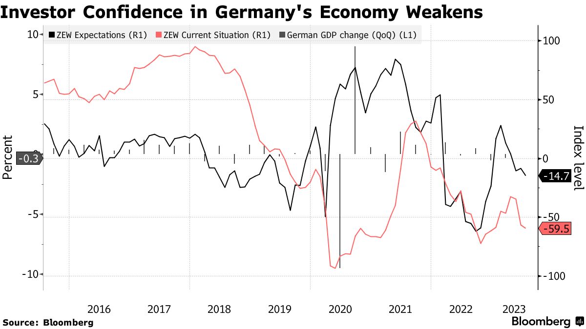 7月,投资者对德国经济的情绪恶化,这加剧了迹象表明它在冬季衰退后难以获得动力。 ZEW研究所的预期指数从6月的-8.5下降到-14.7,比我们的民意调查中的经济学家预测的结果更糟。目前状况指数也下降。最近对欧洲最大经济体能否从截至3月的六个月的低迷中复苏的担忧日益加剧,这主要归因于其庞大的制造业的疲软。