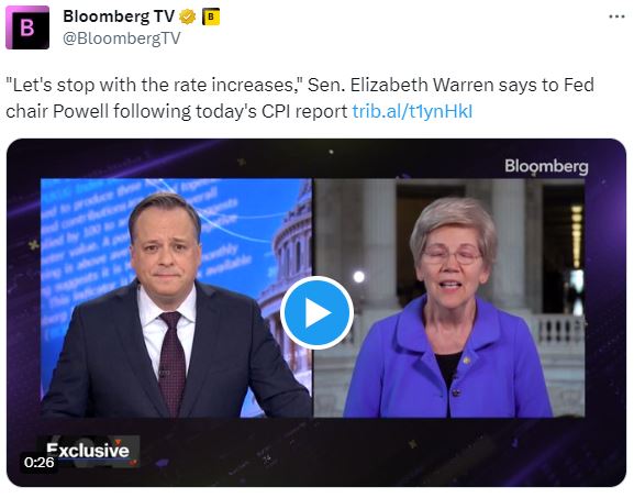 今天在彭博电视台的权力平衡节目中,主持人乔·马修和凯莉·莱因兹采访了弗吉尼亚州民主党代表阿比盖尔·斯潘伯格。在昨天的节目中,参议员伊丽莎白·沃伦表示,美联储主席杰罗姆·鲍威尔应该“接受肯定的答复”,停止中央银行的“非同寻常”的利率上涨。