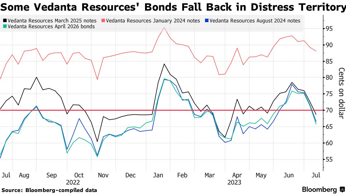 亿万富翁阿尼尔·阿加尔瓦尔的威达塔资源有限公司再次引起了人们对债务偿还和财务紧张的担忧,这一点在这家大宗商品巨头的一些债券亏损中得到了强调。