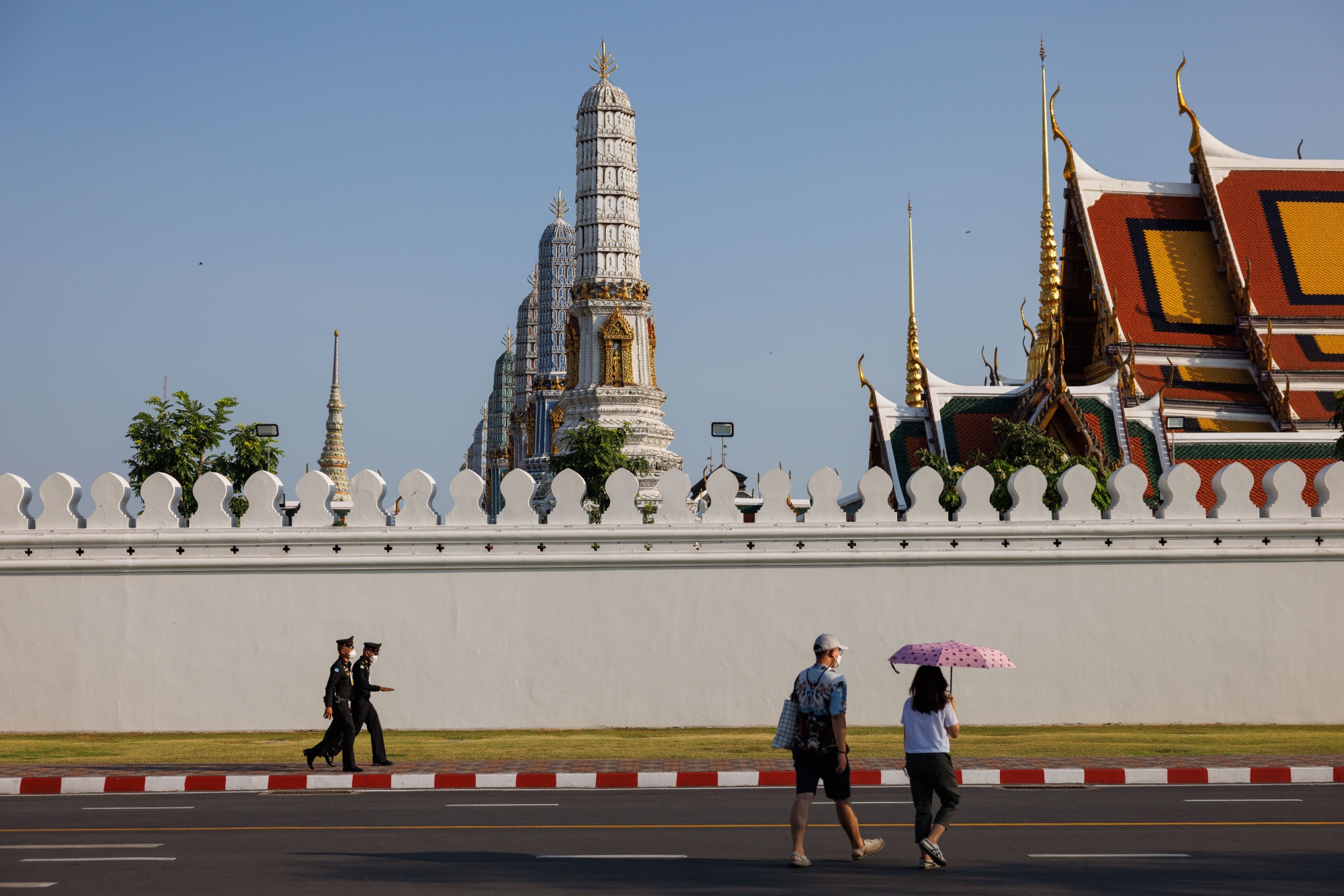 曼谷,泰国,5月6日,泰国皇家警察在大皇宫前。