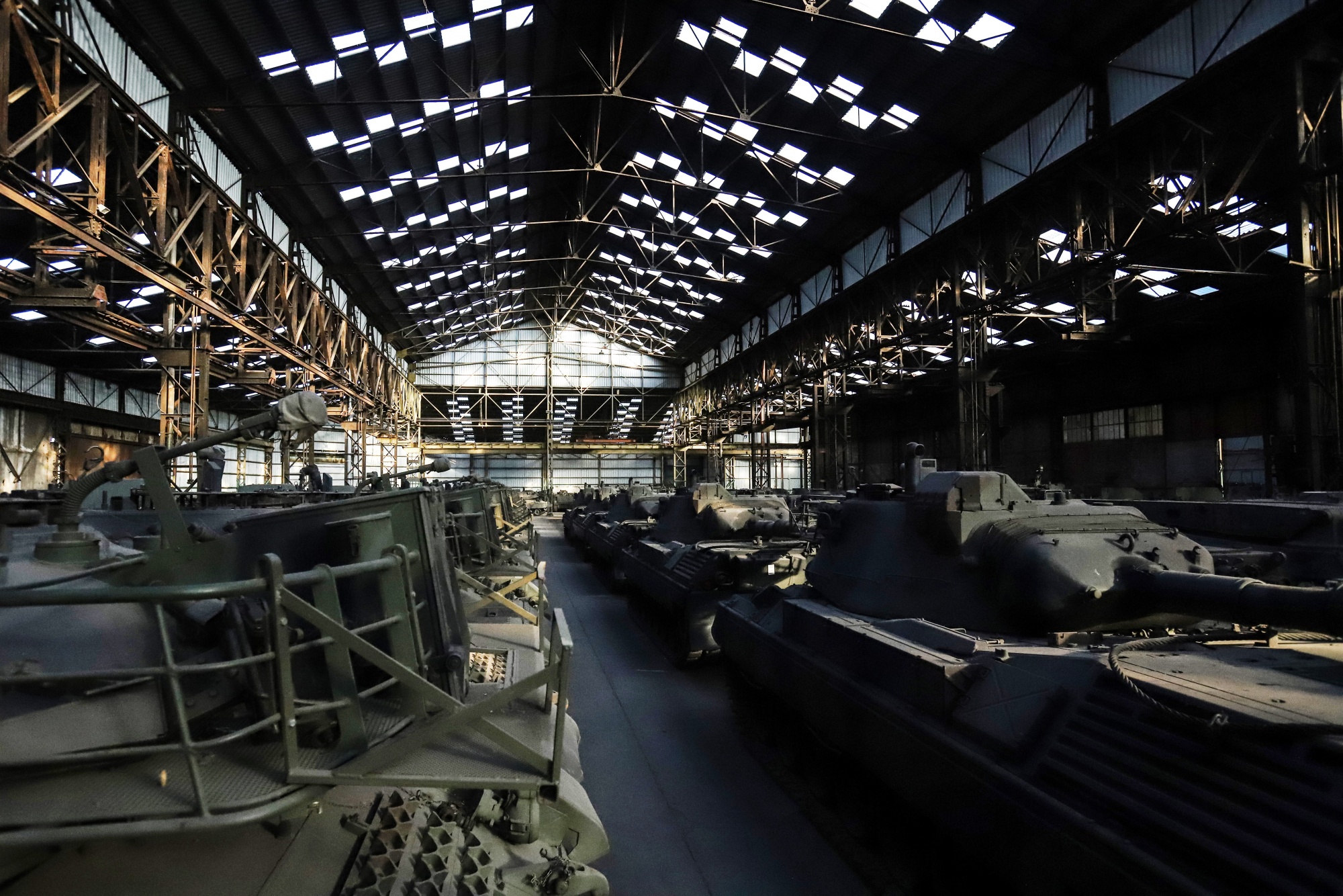 德国制造的Leopard 1坦克队列在比利时图尔奈。