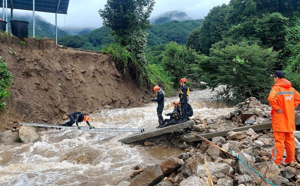 韩国紧急工作人员在7月15日搜寻幸存者。