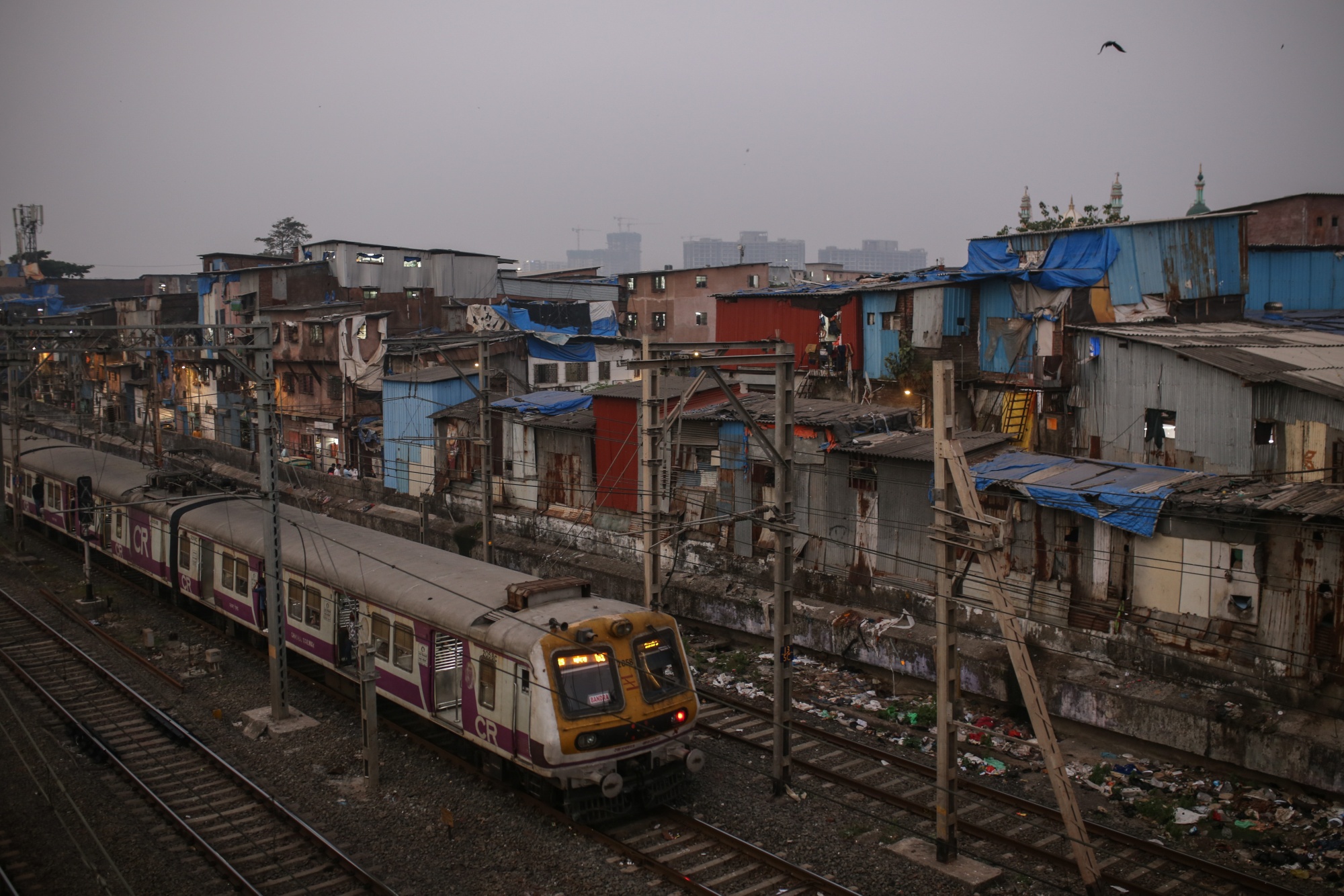 一列火车经过孟买的达拉维地区。摄影师:Dhiraj Singh/Bloomberg阅读更多: 阿达尼力图在“亨登堡”事件后完成30亿美元的贫民窟改造