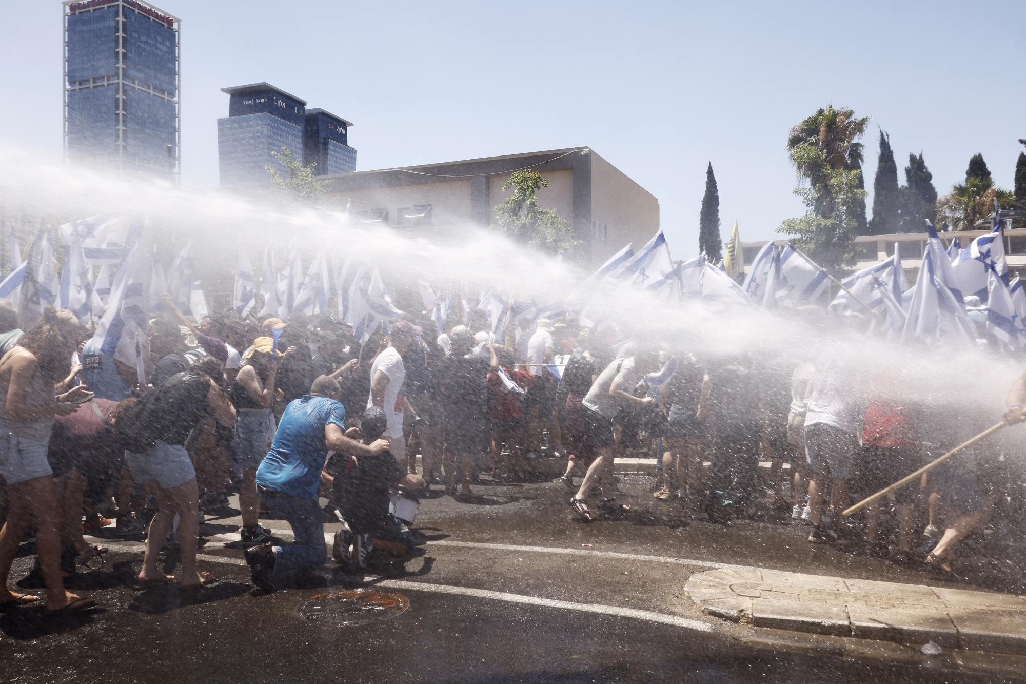 警察试图驱散7月11日在特拉维夫的抗议者。摄影师:科比·沃尔夫/彭博社杰富瑞在以色列设有办事处并是特拉维夫证券交易所的远程成员,表示“应该注意确保任何改革遵守已为以色列科技生态系统成功做出贡献的原则”,如“健全的法律体系”。
