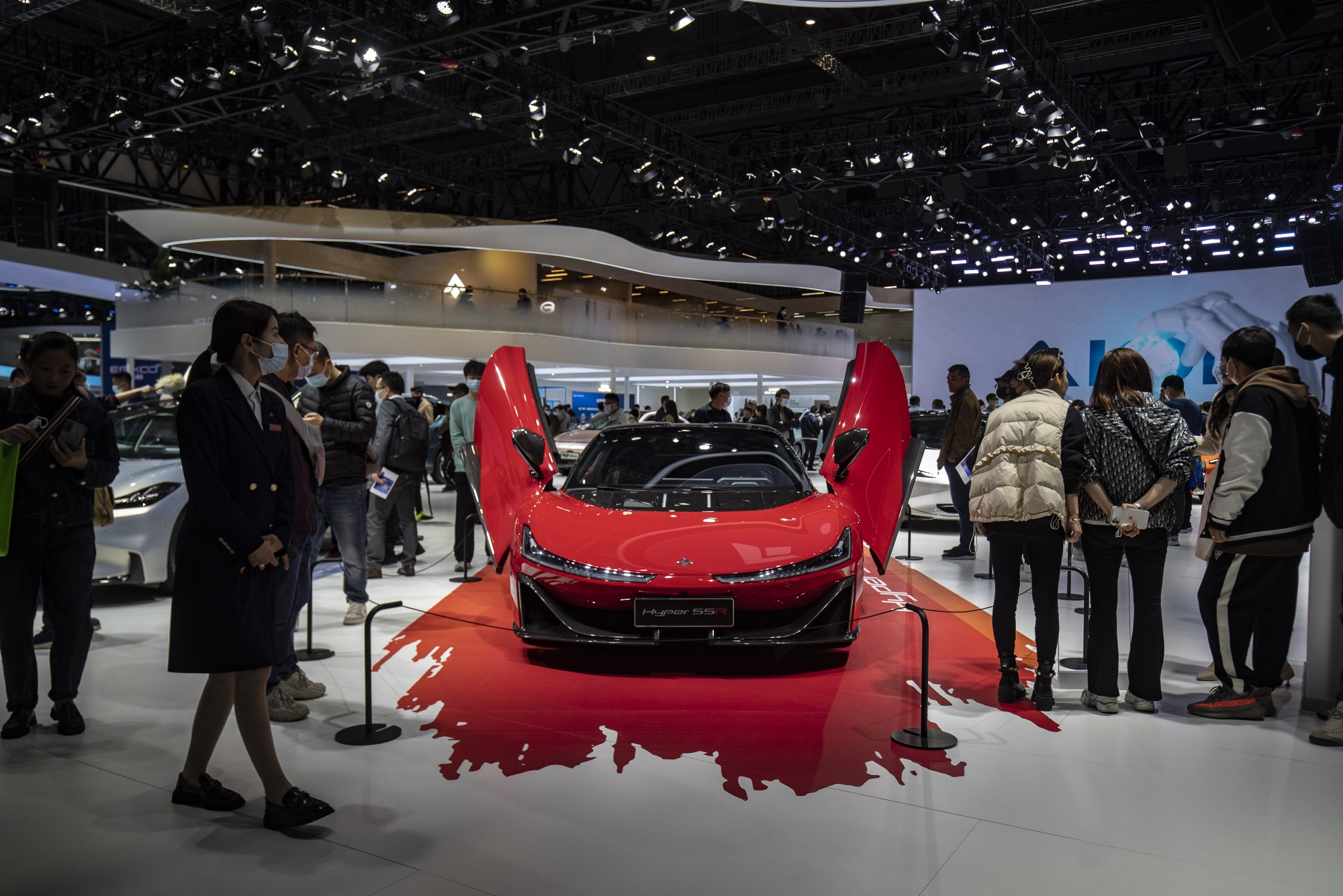 四月份在上海车展上展出的广汽埃安Hyper SSR电动跑车。摄影师:Qilai Shen/Bloomberg显然,充足的基础设施有助于电动汽车的普及。中国拥有全球最大的充电网络,仅在2022年就新增了64.9万个公共充电桩,占当年全球所有安装量的70%以上。