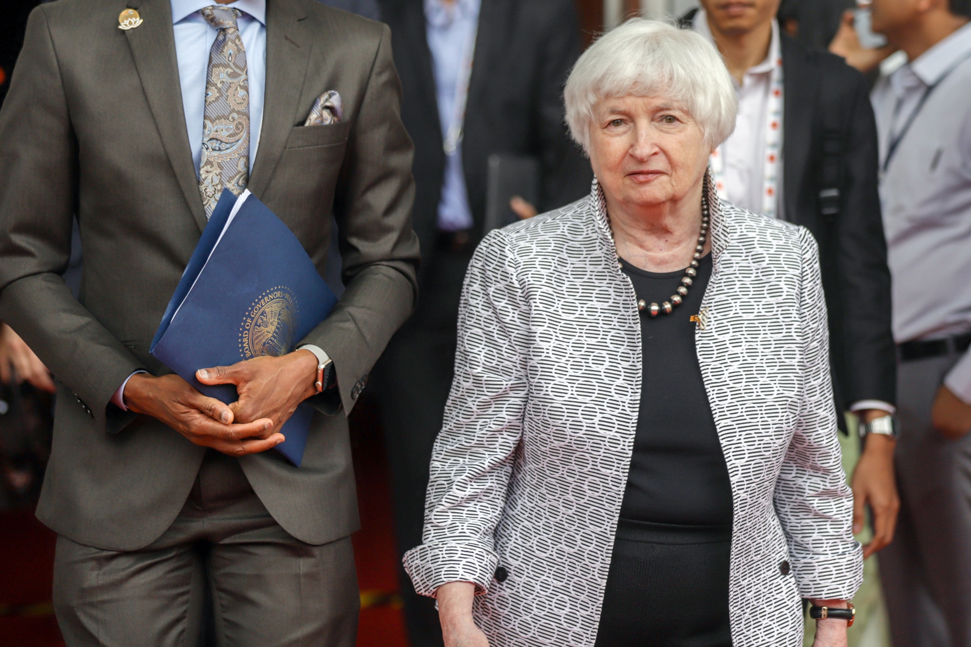 珍妮特·耶伦,美国财政部长,在印度甘地纳格尔举行的二十国集团(G-20)财政部长和央行行长会议上。