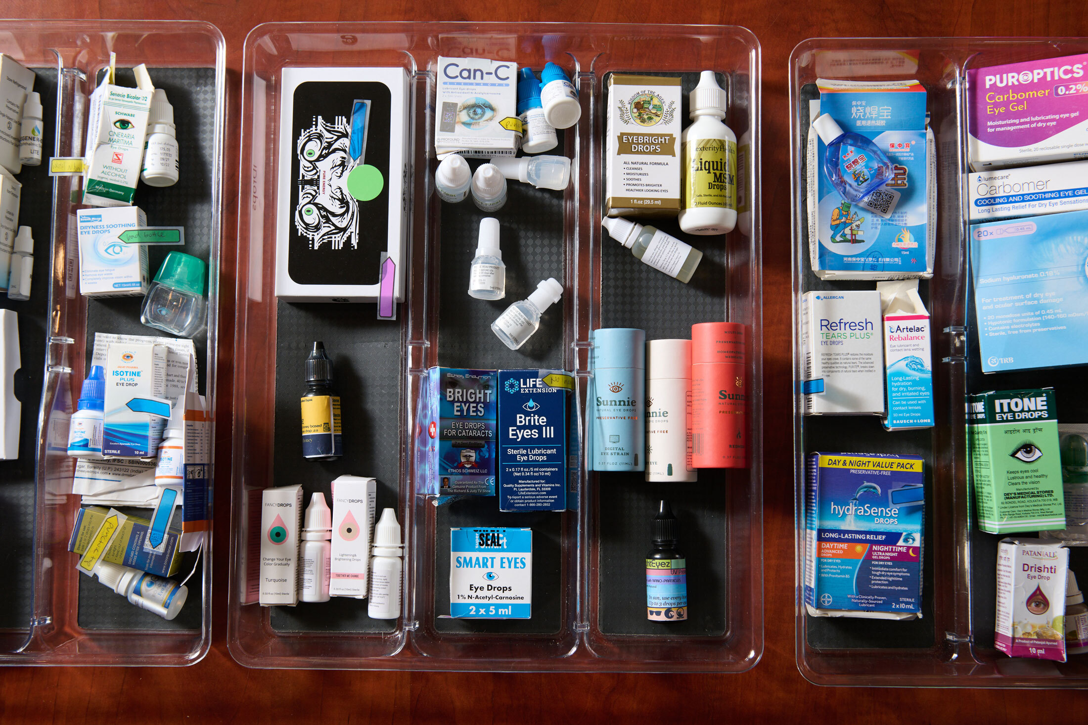 眼药水被宣传为不含防腐剂。但这意味着它们也缺乏防止细菌生长的化学物质。大多数制造商只在单次使用的小瓶或专门设计的多次使用瓶中销售这种眼药水,以保持无菌状态。这两种方式成本更高。Global Pharma的无防腐剂眼药水装在常规、更便宜的瓶子中,含有多剂。
