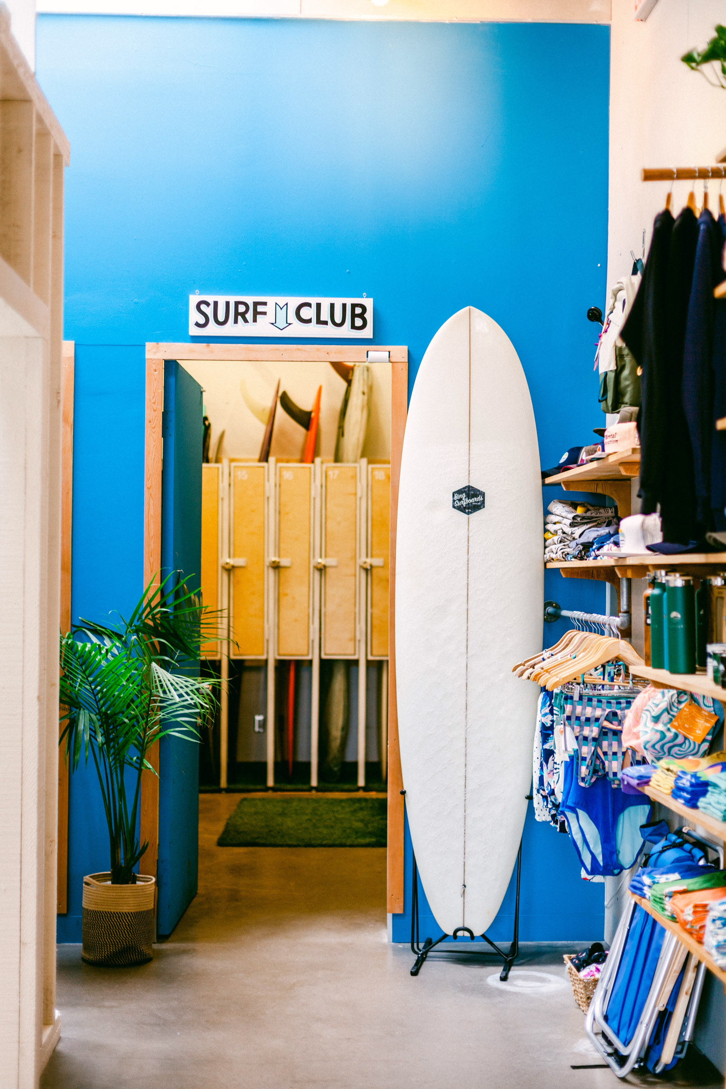 隔壁,旅行者冲浪俱乐部和海滨前哨提供的氛围更像精品店而不是兄弟会。这是一个明亮、通风的空间,设有热水淋浴、聚会场所和用于存放冲浪板的储物柜。出售的装备在传统冲浪店中也很难找到:来自公司如Vissla和Kassia+Surf的潜水服是无石油化学物质和由石灰石氯丁橡胶和回收材料制成的。一些冲浪板被认证为生态板,意味着它们由无毒和可持续的组件构建。