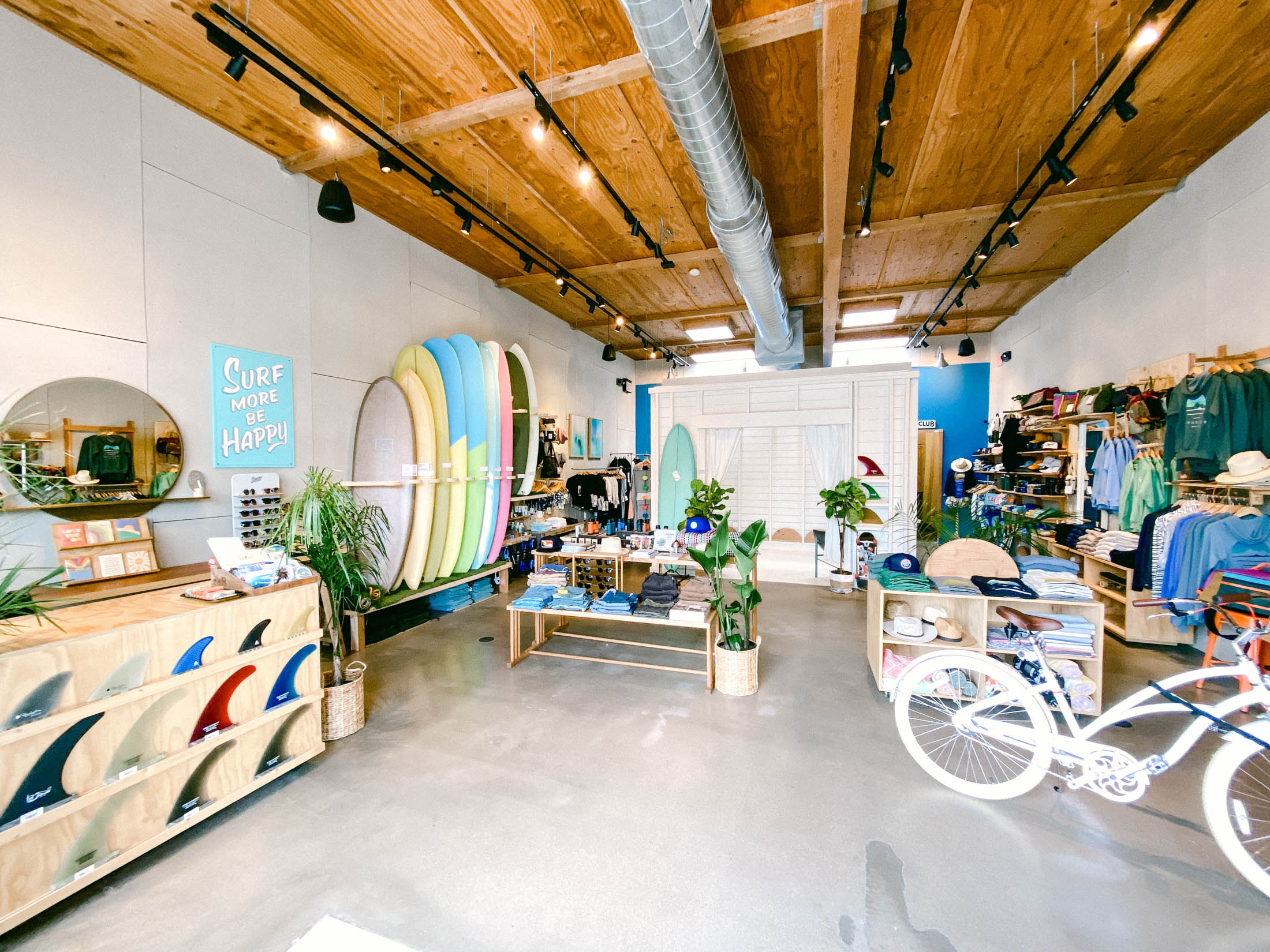在其各个前哨基地,Traveler至少解决了部分旅行问题:该商店为顾客提供冲浪板储物柜和配有板架的海滩巡航自行车,旨在减少从家到海滩的交通方式对碳排放的影响。