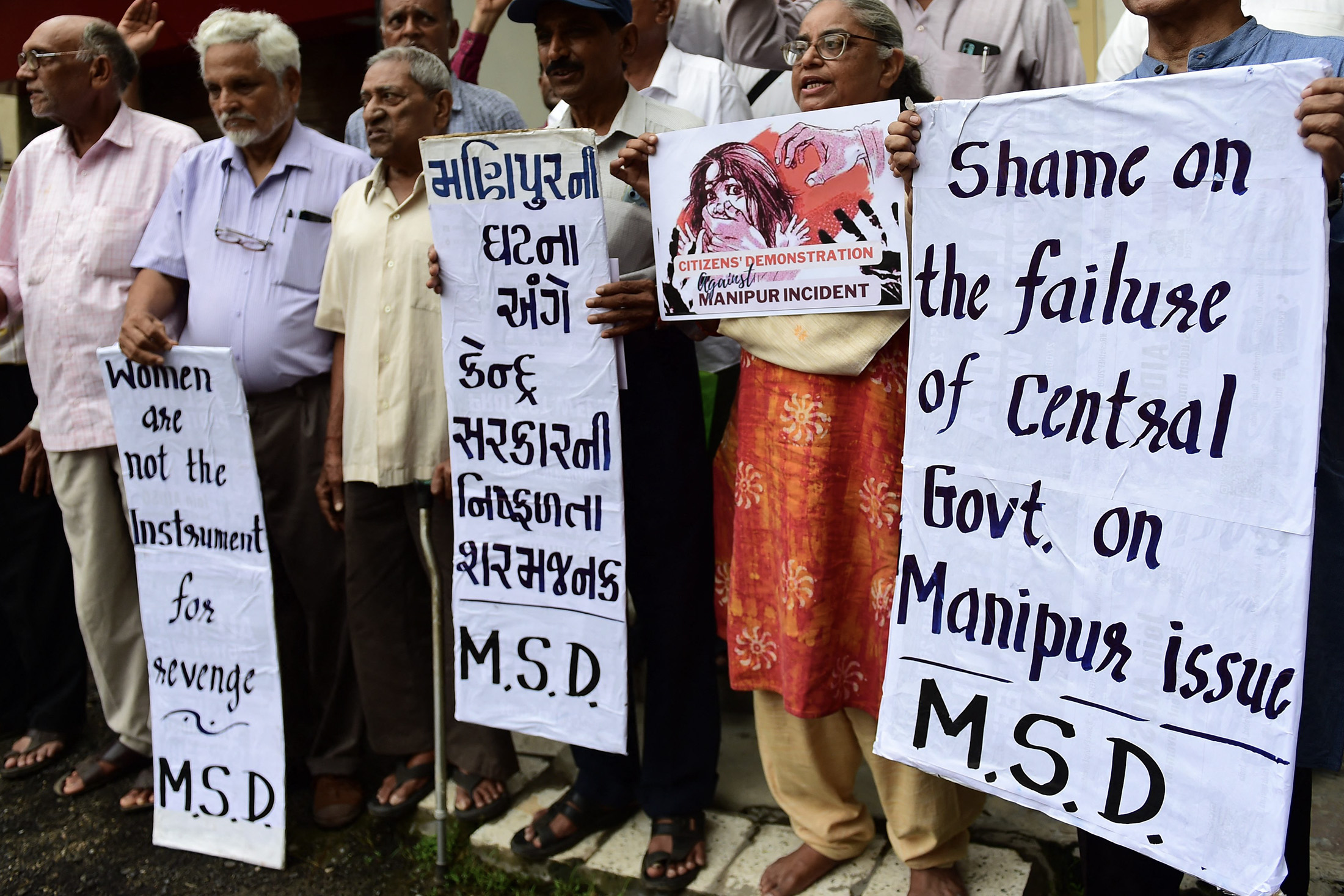 示威者在印度艾哈迈达巴德举行抗议活动,抗议针对妇女的性暴力,时间为7月20日。