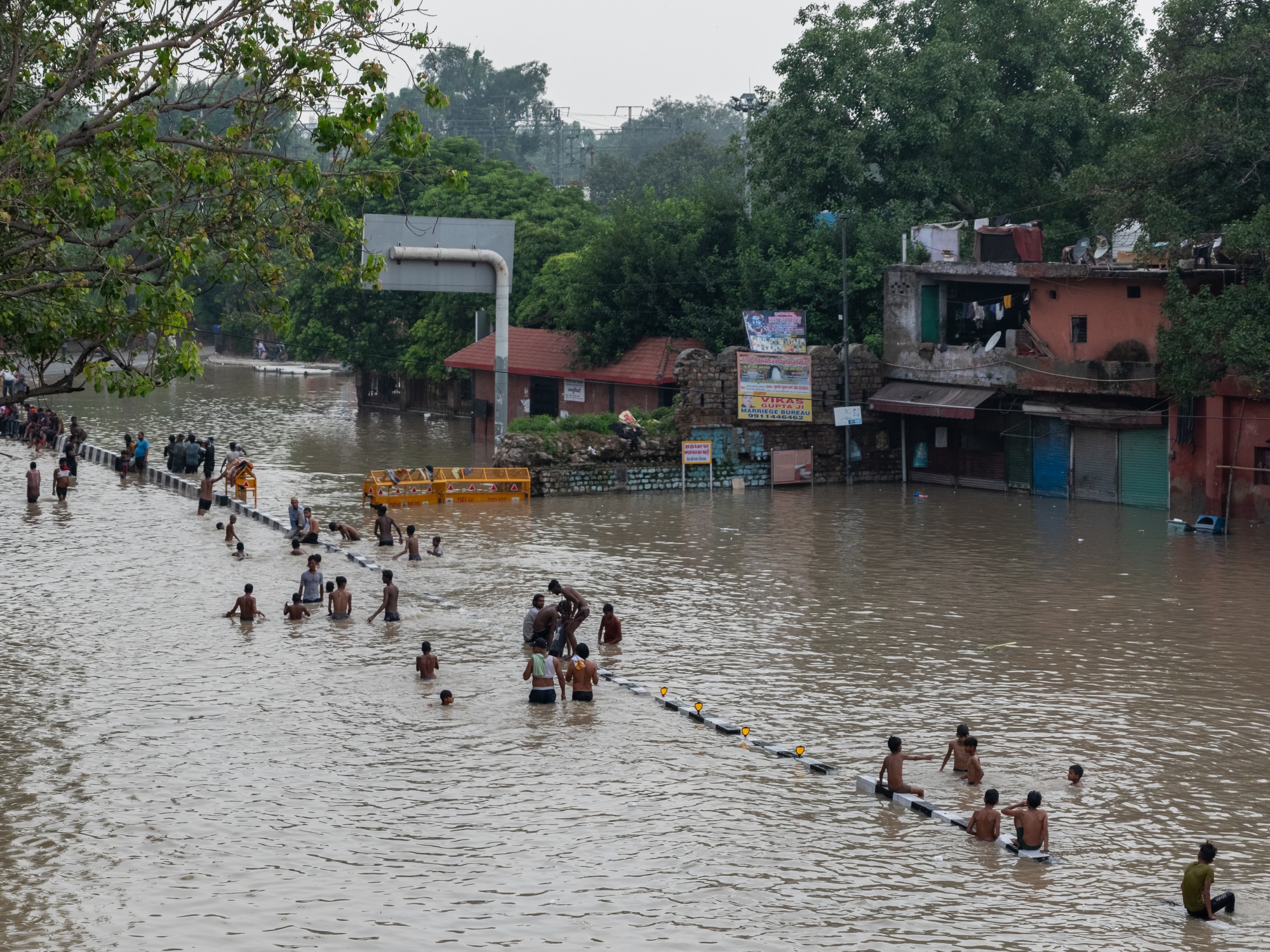 印度新德里的洪水中的居民,日期为7月14日。摄影师:Anindito Mukherjee/Bloomberg阅读更多:极端高温和湿度如何考验生存极限:简介