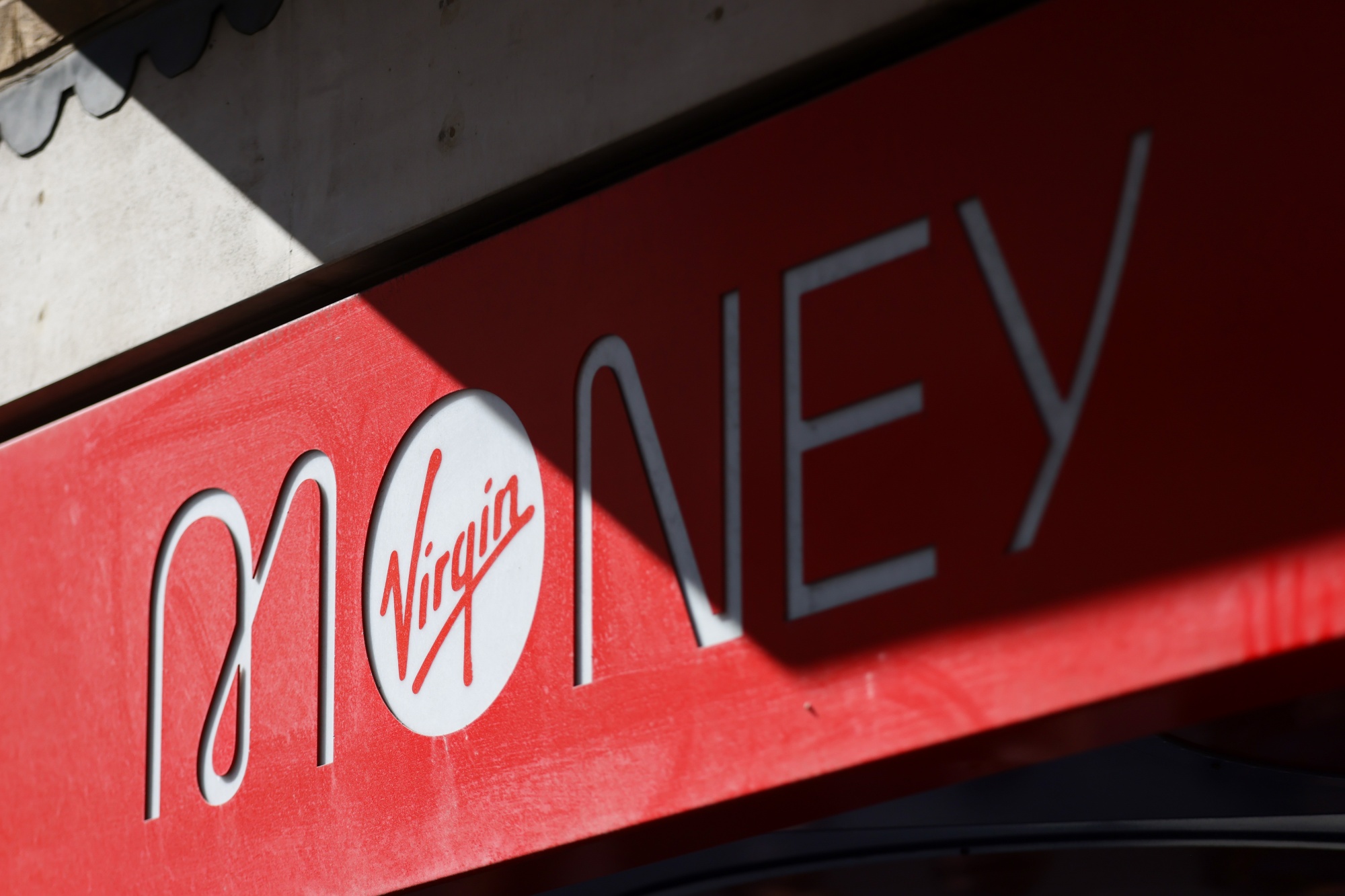 伦敦,英国维珍钱银行分行入口上方的标志。