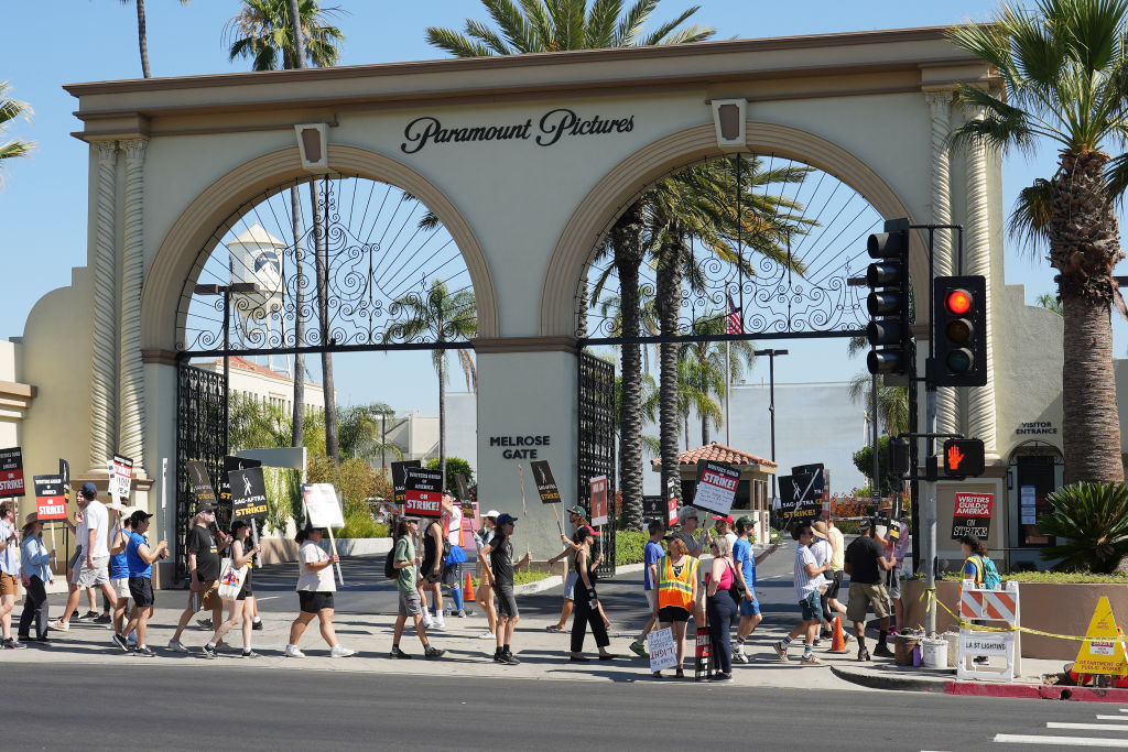 美国电影和电视演员工会(SAG-AFTRA)和编剧工会(WGA)的成员和支持者于7月20日在洛杉矶的派拉蒙影城走上了罢工线。