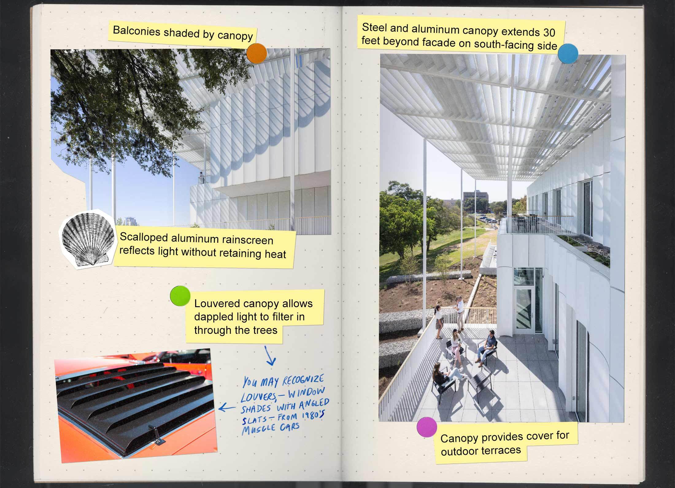 照片:Iwan Baan;插图:Stephanie Davidson/Bloomberg CityLab尽管受到当地限制,但休斯顿基金会项目仍然在一年中的九个月实现净零能耗,整个年度建筑物产生的能源可能会超过消耗的能源。总部建筑使用来自北美的材料建造,包括在加拿大生产的CLT甲板,以及在墨西哥制造的扇形铝雨挡板,从而减少了运输成本以及碳排放。