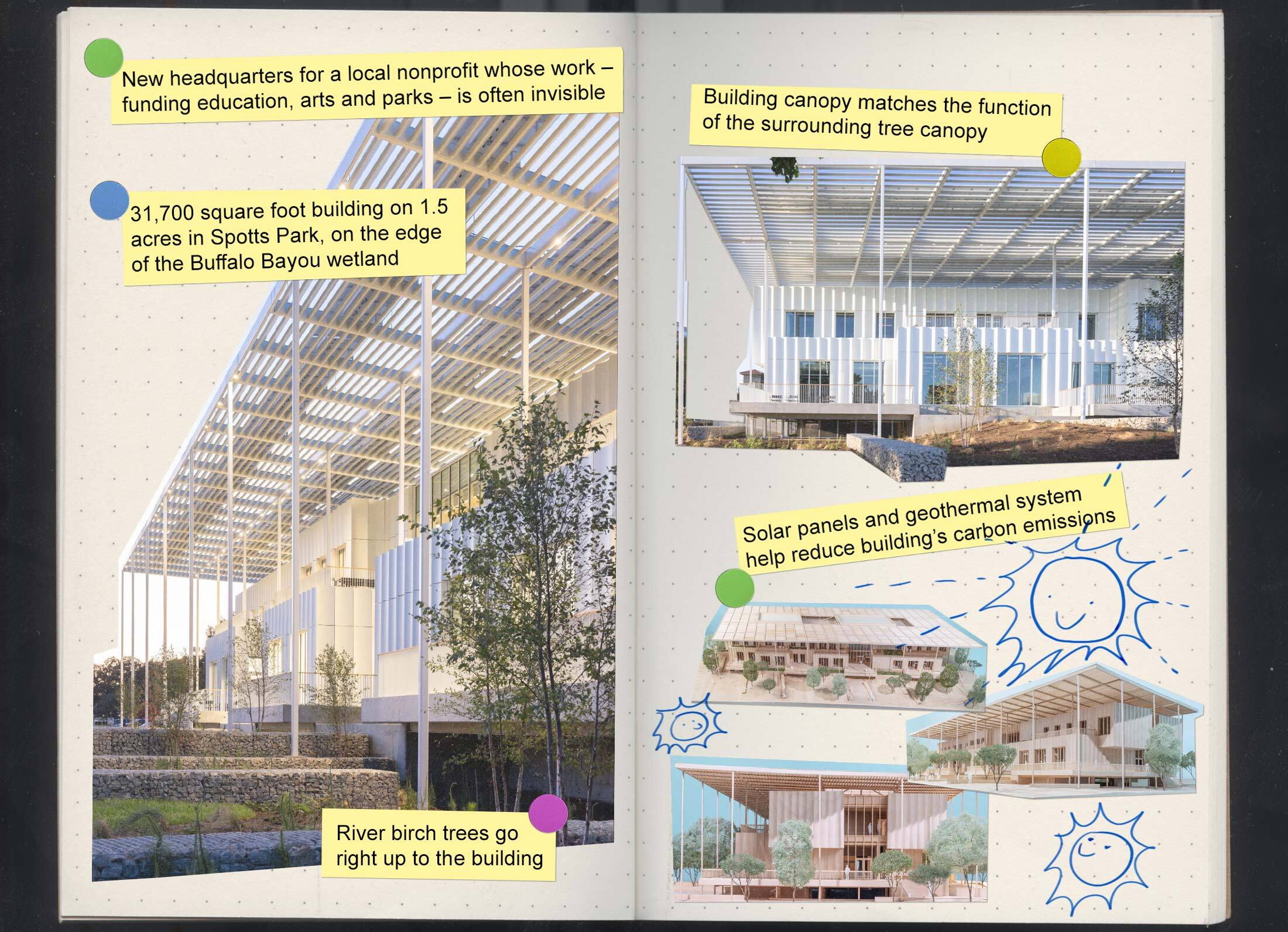 因此,当休斯顿基金会决定搬离位于市中心一座办公楼64层的办公室以适应其增长时,基金会领导层并不清楚新总部应该是什么样子。基金会希望建造一座能在可持续性方面作为当地典范的建筑,但领导们也希望设计具有固有谦逊的特点,建筑师凯文·戴利表示。
