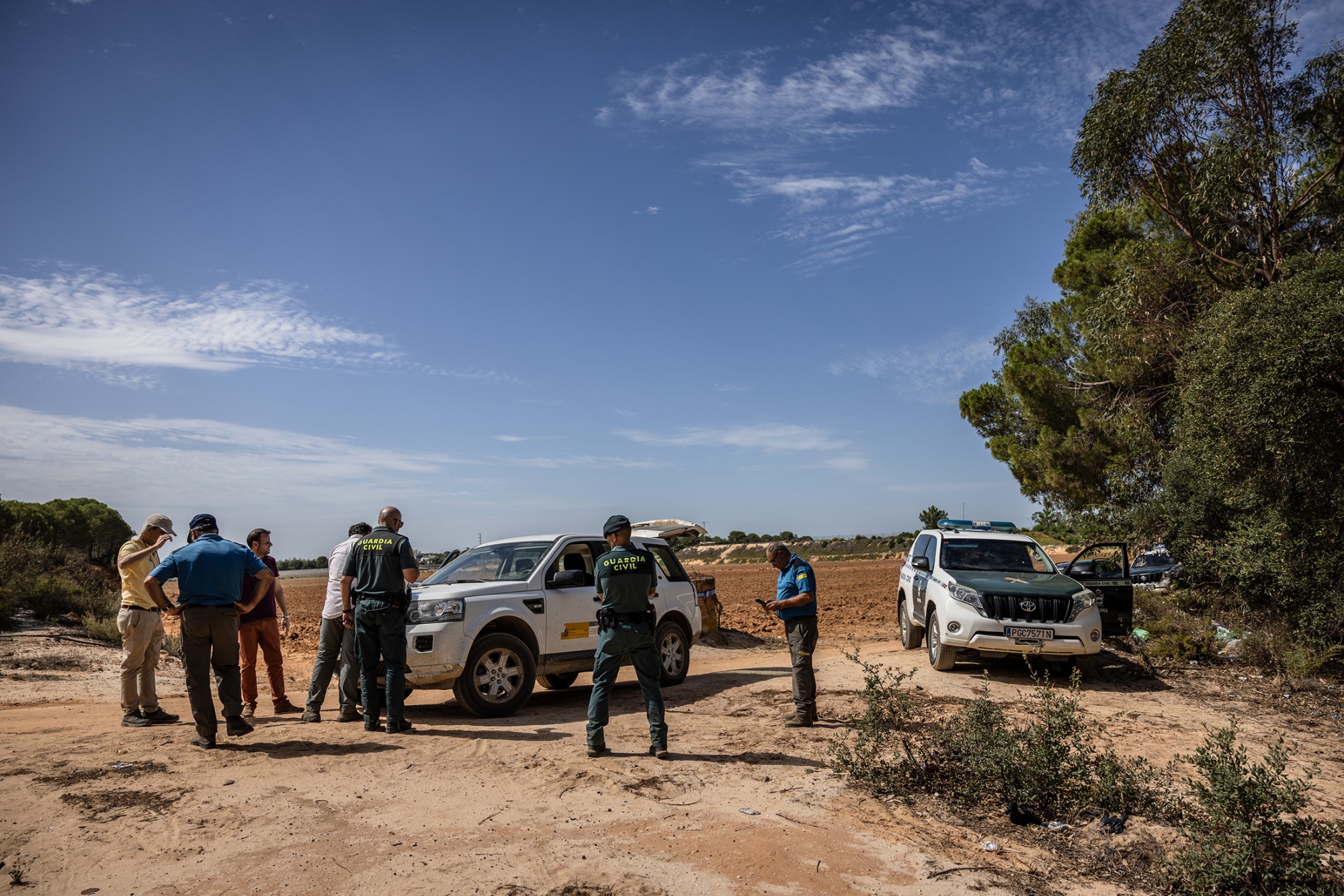瓜达尔基维尔水警和国民警卫队正在关闭位于胡埃尔瓦的多纳纳公园内的非法井。