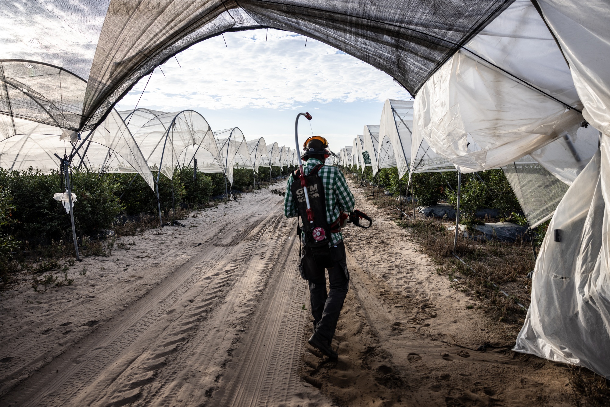 阿尔蒙特的一家农场在收获结束后修剪蓝莓植株的工人。摄影师:Àngel García/Bloomberg费利佩·富恩特尔萨兹(Felipe Fuentelsaz)对多纳纳(Doñana)的担忧远远超过了这个选举周期。这位世界自然基金会(WWF)官员花了七年时间与当地政客和农民进行谈判,以在2014年达成一项协议,保护国家公园免受偷水者的侵害。