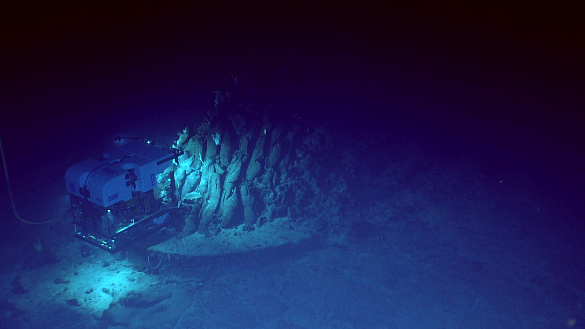 远程操作车辆Deep Discoverer在海底的一处露头进行成像。科学家们对深海生态系统仍了解甚少,包括开采可能造成的危害。照片:NOAA海洋探索