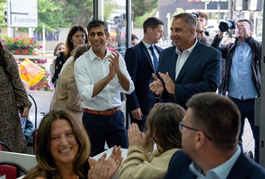 里希·苏纳克与新当选的保守党议员史蒂夫·塔克韦尔在7月21日于伦敦鲁伊斯利普合影。