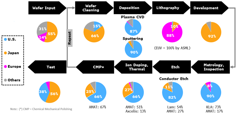 美国试图说服关键盟友加入针对中国的努力,因为仅禁止美国公司将使中国公司转向外国竞争对手供应。赢得荷兰和日本的支持对美国至关重要,因为生产最复杂芯片制造设备的所有关键公司都位于这三个国家。它们包括美国的应用材料公司,荷兰的ASML控股公司和日本的东京电子公司。日本公司在芯片制造过程的几个阶段,包括晶圆清洁和开发,都占据主导地位。