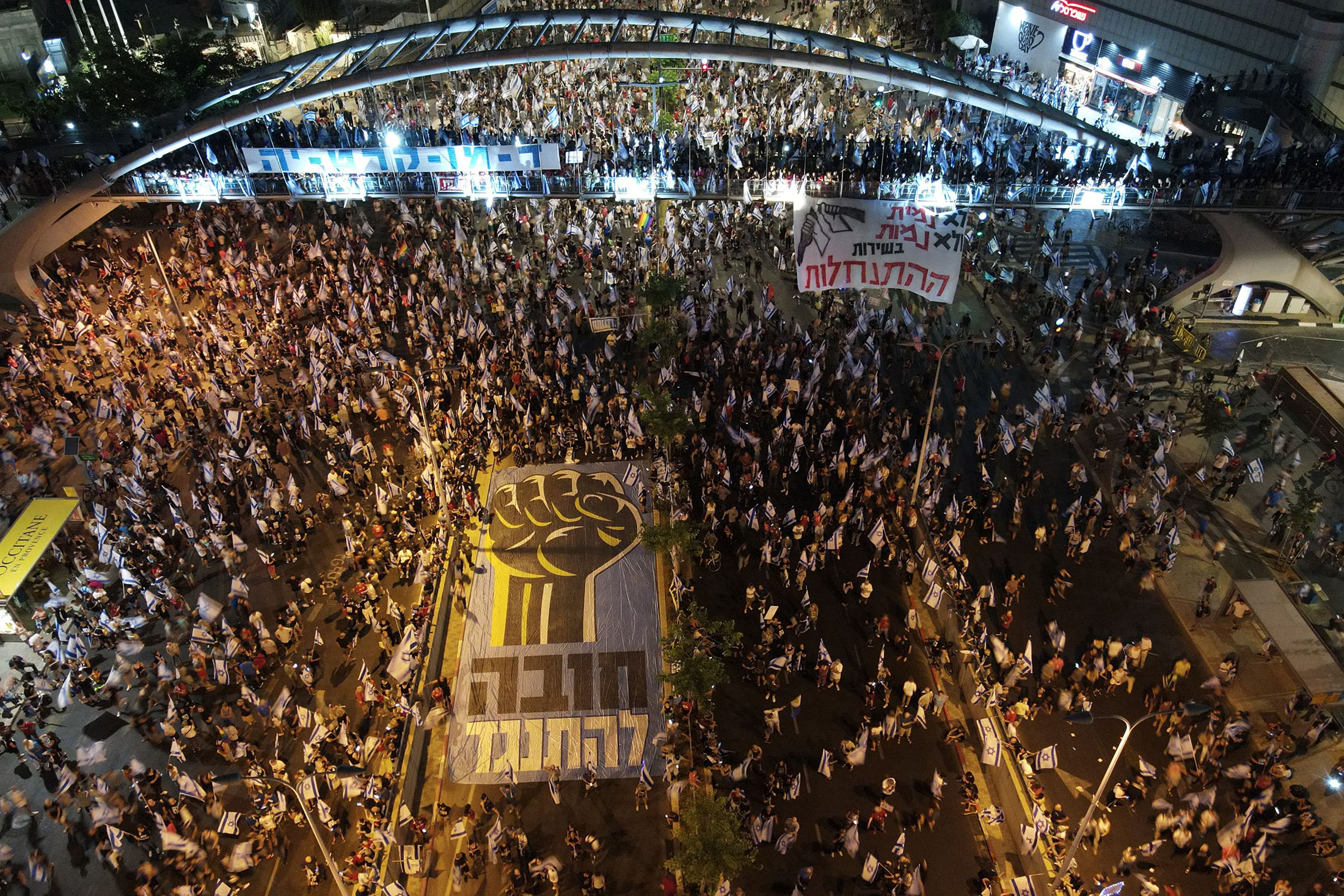 7月22日在特拉维夫举行了一场抗议以色列政府司法改革法案的示威活动。