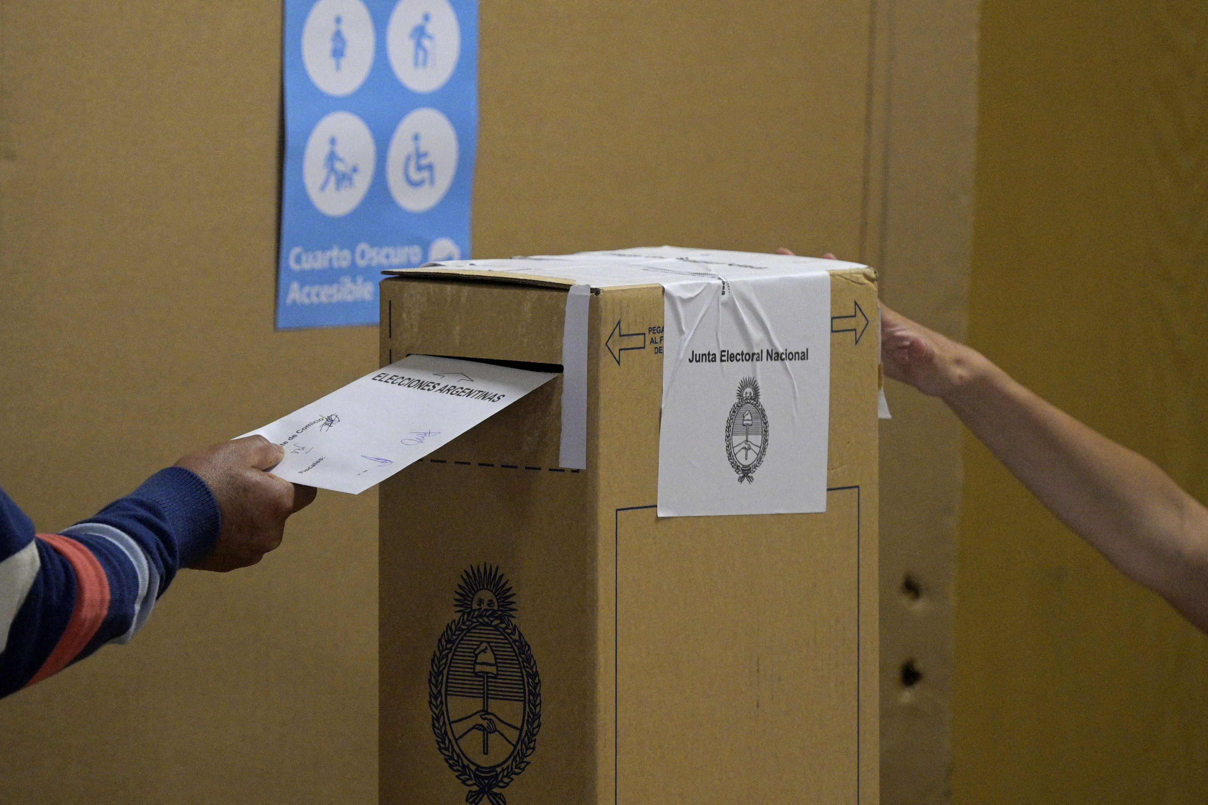 一个人在阿根廷布宜诺斯艾利斯投票。
