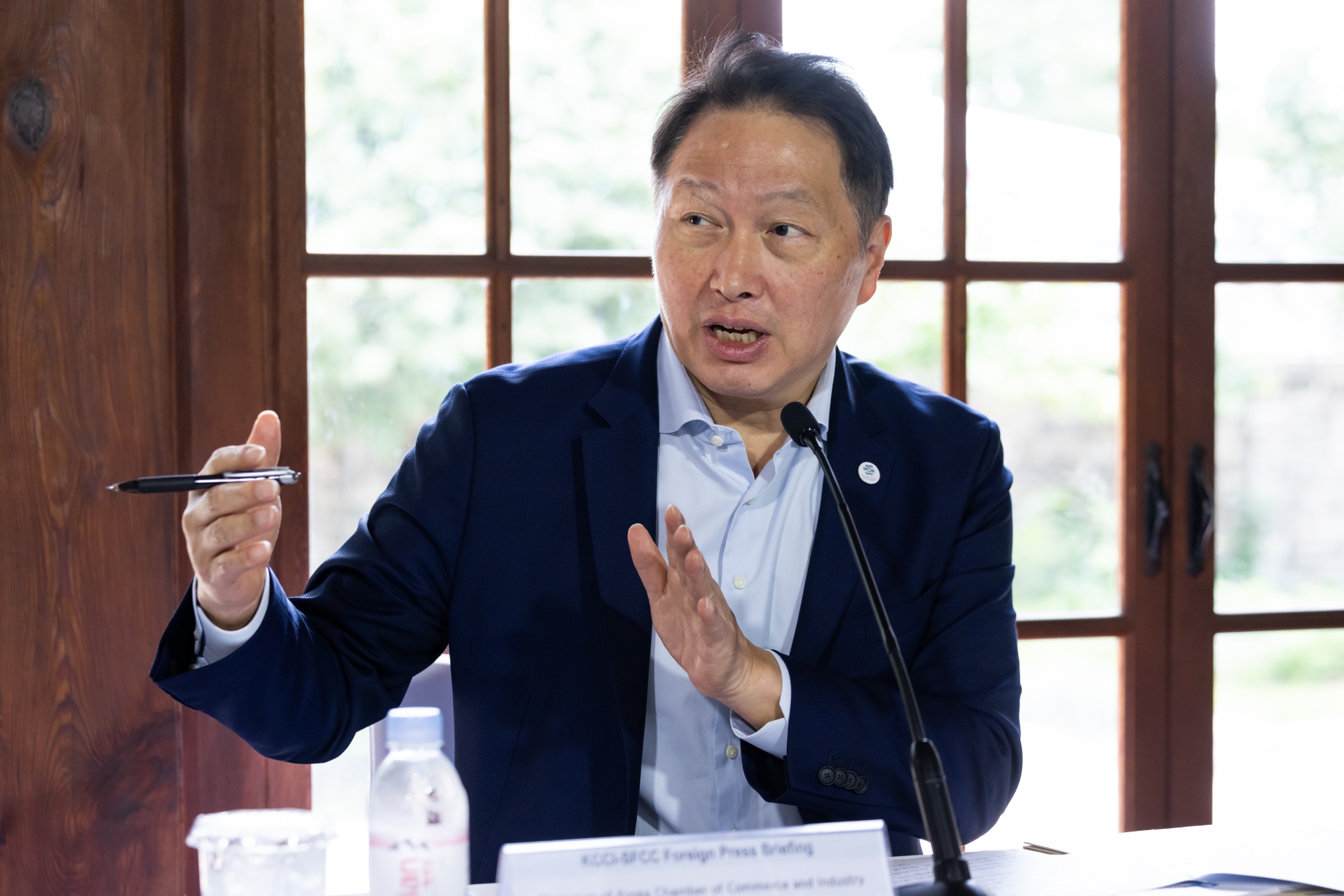 七月二十六日,在首尔举行新闻发布会的Chey Tae-won。摄影师:SeongJoon Cho/Bloomberg转变关注点的需要要求韩国公司寻找替代市场,并扩展到更多新兴产业,比如涉及人工智能的企业,Chey表示。他在一次罕见的与外国媒体举行的简报会上发表了这些评论,强调韩国提议在其第二大城市釜山举办2030年世界博览会。