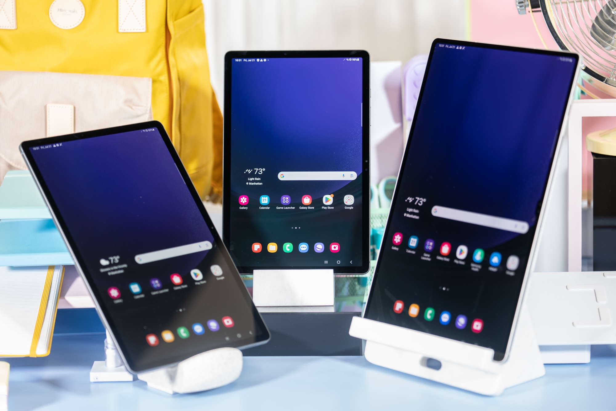 Tab S9、Tab S9+和S9 Ultra平板电脑摄影师:Jeenah Moon/彭博社该公司还宣布更新了其11英寸、12.4英寸和14.6英寸的平板电脑,分别命名为Tab S9、Tab S9+和S9 Ultra。这三款型号现在都具有IP68级防水性能,外观与之前的产品相比几乎没有变化。最便宜的平板电脑采用了OLED显示屏,以改善色彩效果,并且取消了机身上的指纹传感器,改为在显示屏内置指纹传感器。