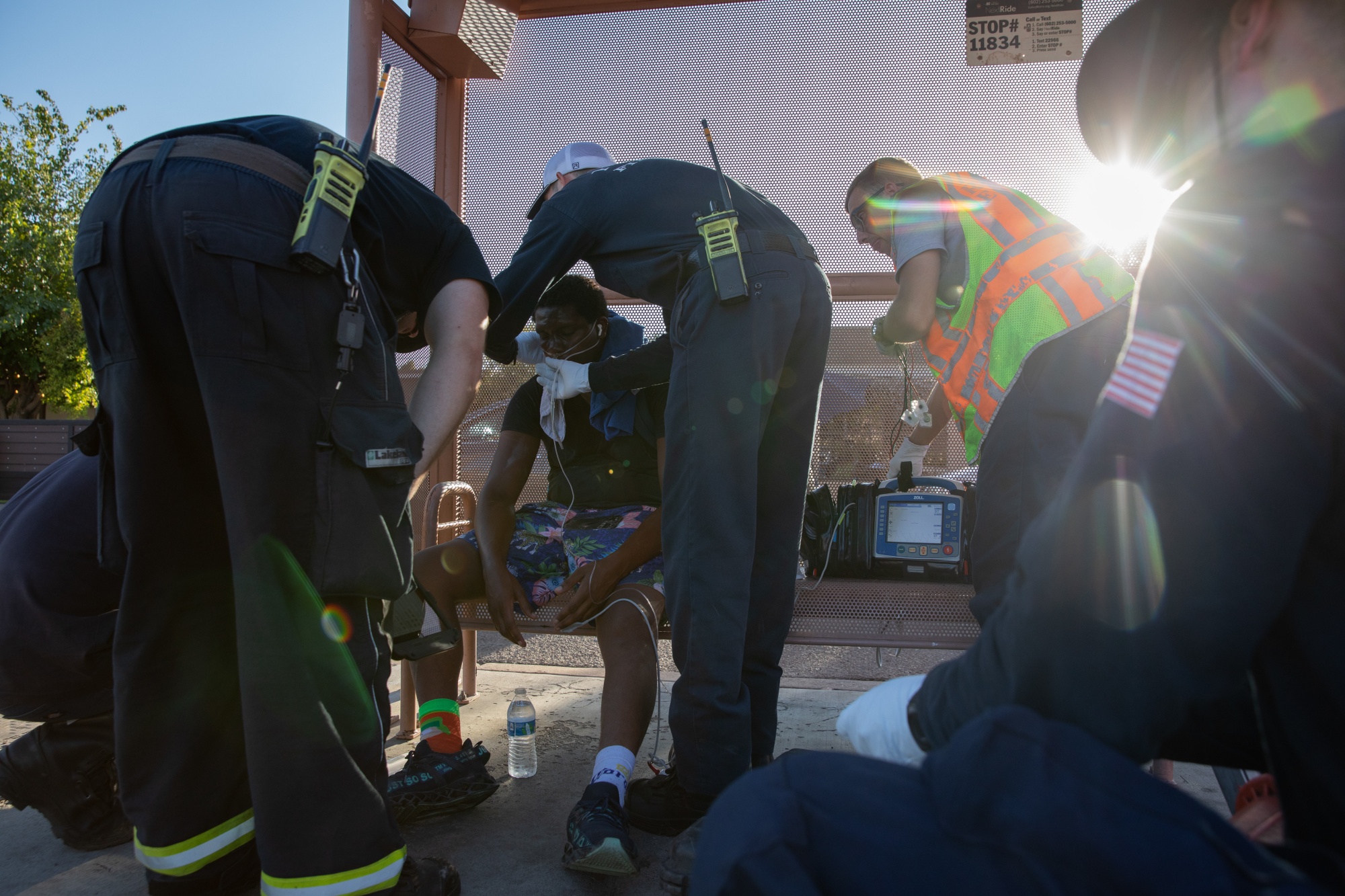 凤凰城消防员在7月20日热浪中治疗一名呼吸困难的男子。