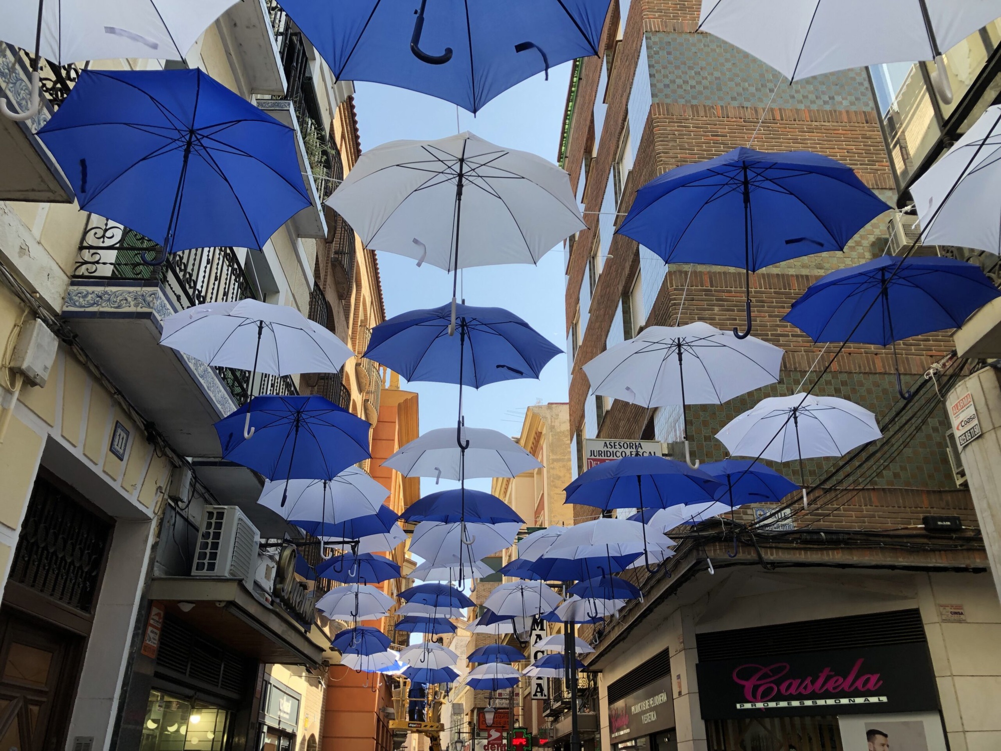 由塔拉韦拉德拉雷纳市政府安装的遮阳伞,旨在减轻炎热并为市中心的行人提供阴凉。来源:塔拉韦拉德拉雷纳市政府当局正在尝试临时措施,比如在该镇中心的一条街道上覆盖一片遮阳伞棚,以保护当地居民免受阳光照射,来自“你的干燥云我的河”组织的戈麦斯对科技带来的帮助持怀疑态度,认为这对塔拉韦拉没有任何积极影响。她说,水资源补给计划实现了两个目标:“在公众眼中看起来不错,赢得当地环保团体的支持。”