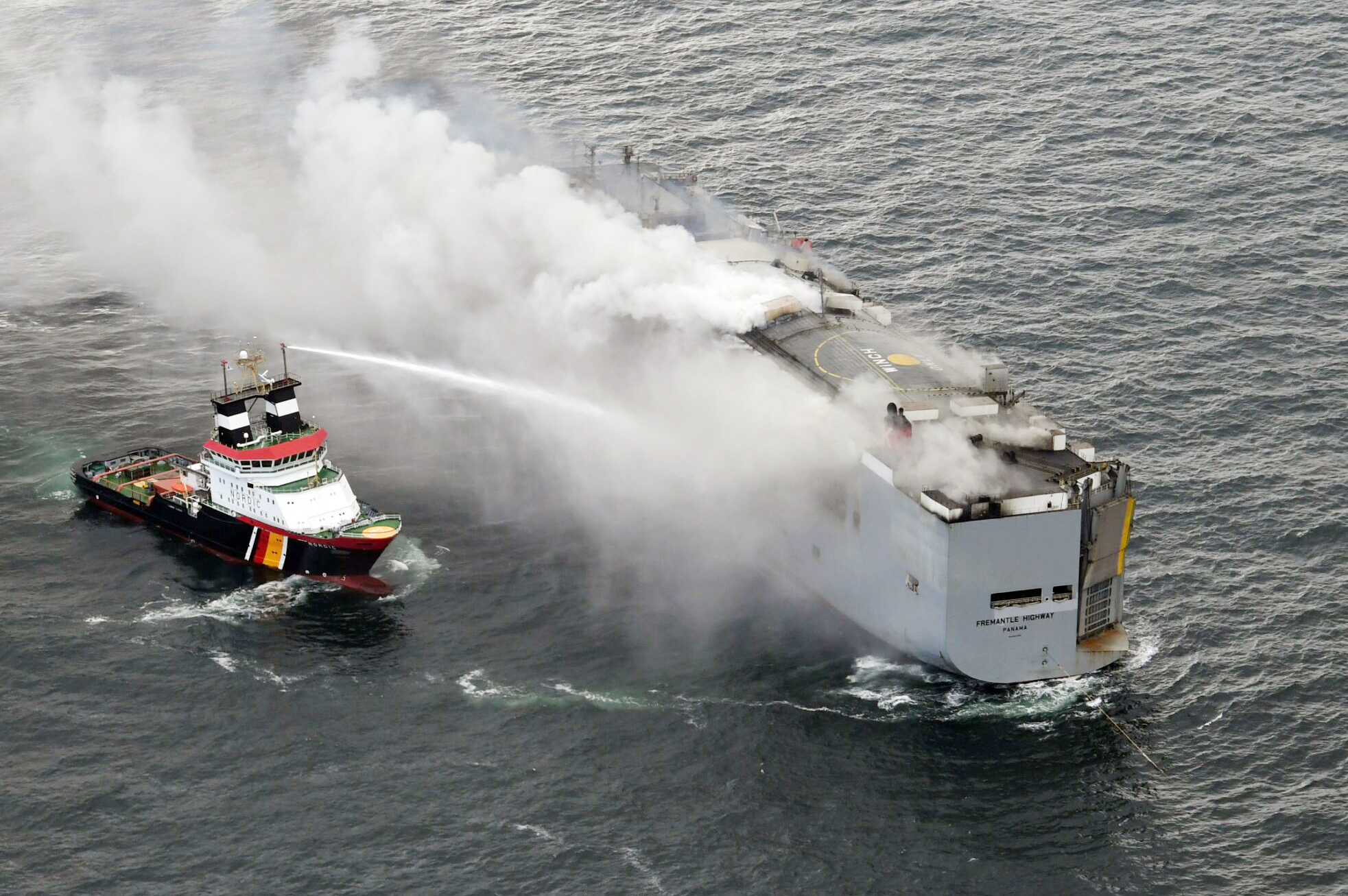 这一事件让人想起了去年的一场海上灾难,当时一艘在大西洋着火的货船在恶劣海况中沉没,尽管经过一周多的努力试图将其拖至安全地带,该货船上载着大约4,000辆大众汽车前往美国。