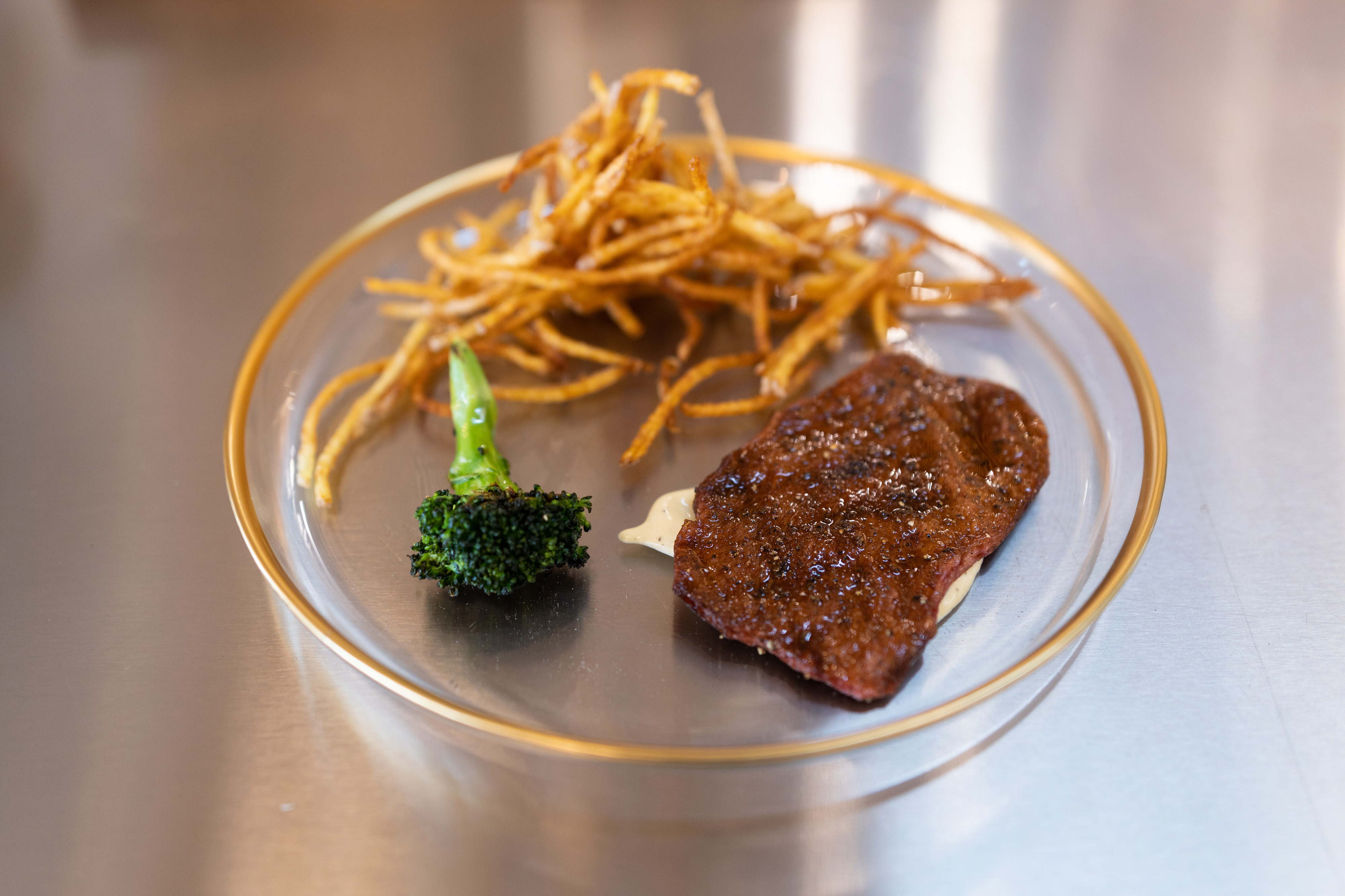 一个培育的牛排。摄影师:Corinna Kern/BloombergAleph Farms Ltd.,一家实验室培育肉类公司,正在寻求瑞士的监管批准,以销售世界上第一批由优质黑安格斯牛的非改良细胞培育出的牛排。