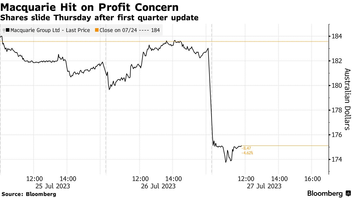 周四,悉尼的股价下跌了多达5.2%,创下自2022年6月以来的最大跌幅。这家澳大利亚投资银行和资产管理公司还指出,相对于去年同期强劲的业绩,其市场业务在本季度表现较弱,声明称。麦格理资本的费用收入也因活动水平低迷而下降。
