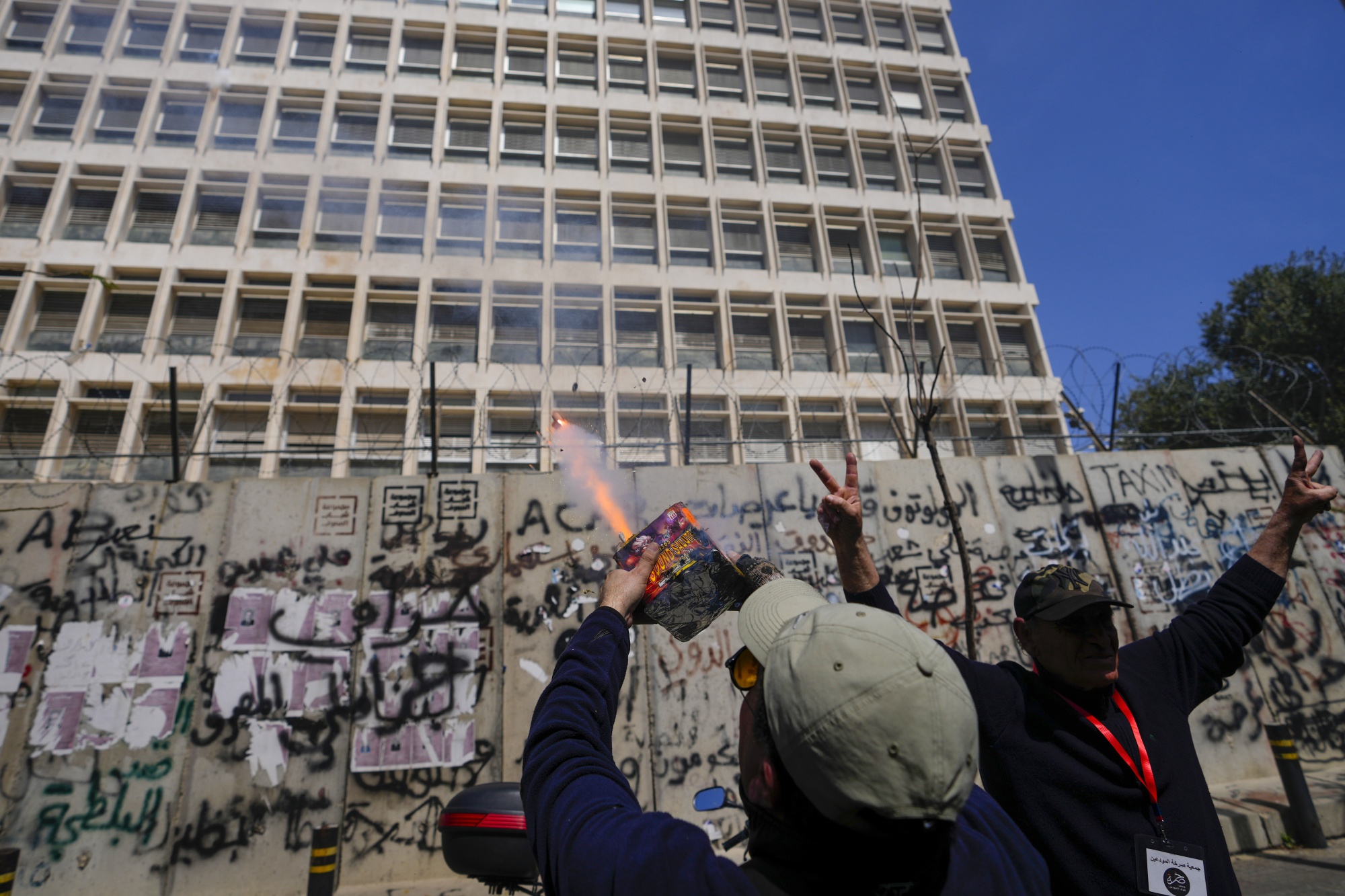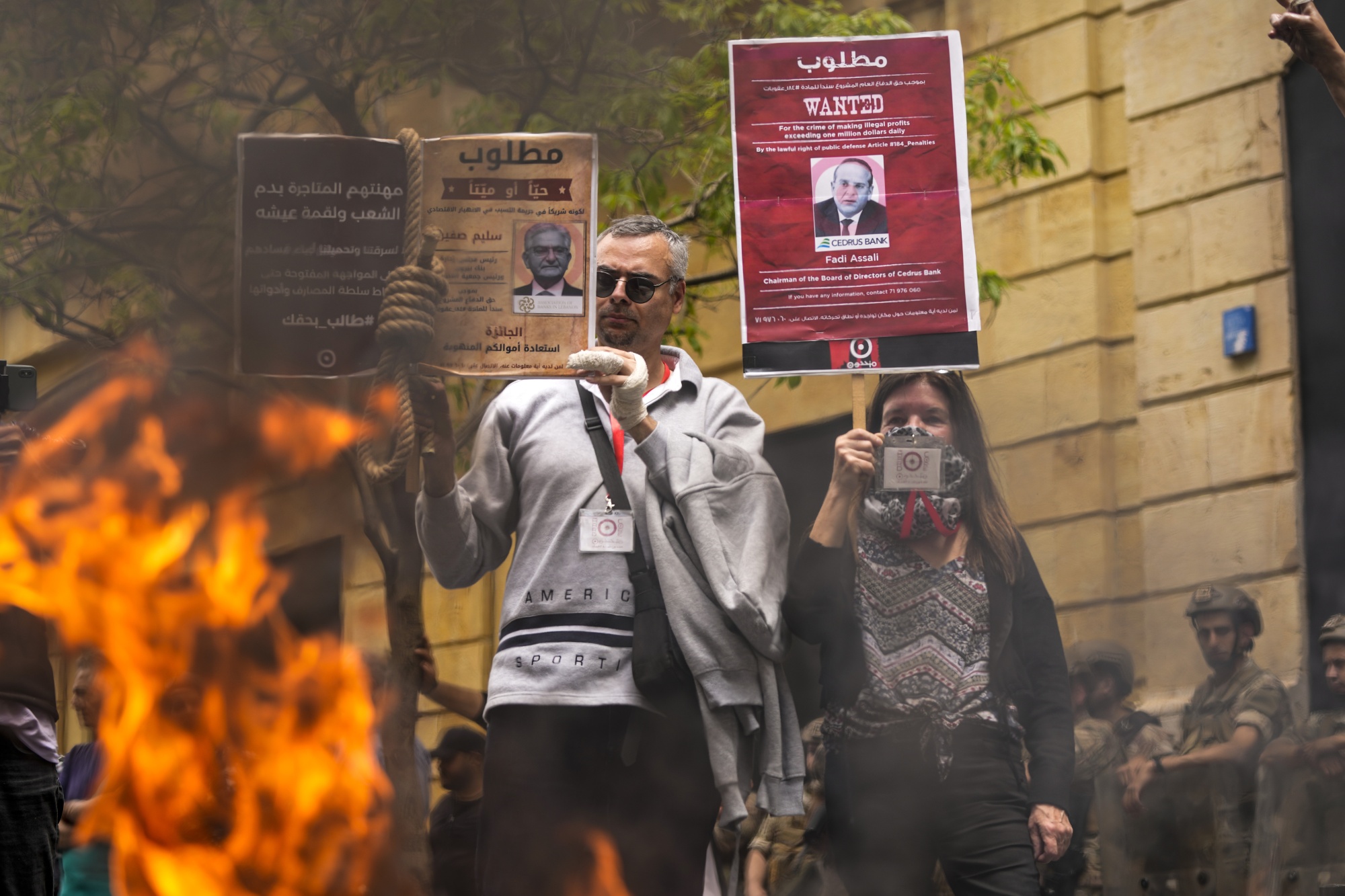 抗议者在黎巴嫩贝鲁特的黎巴嫩银行外,2023年3月。