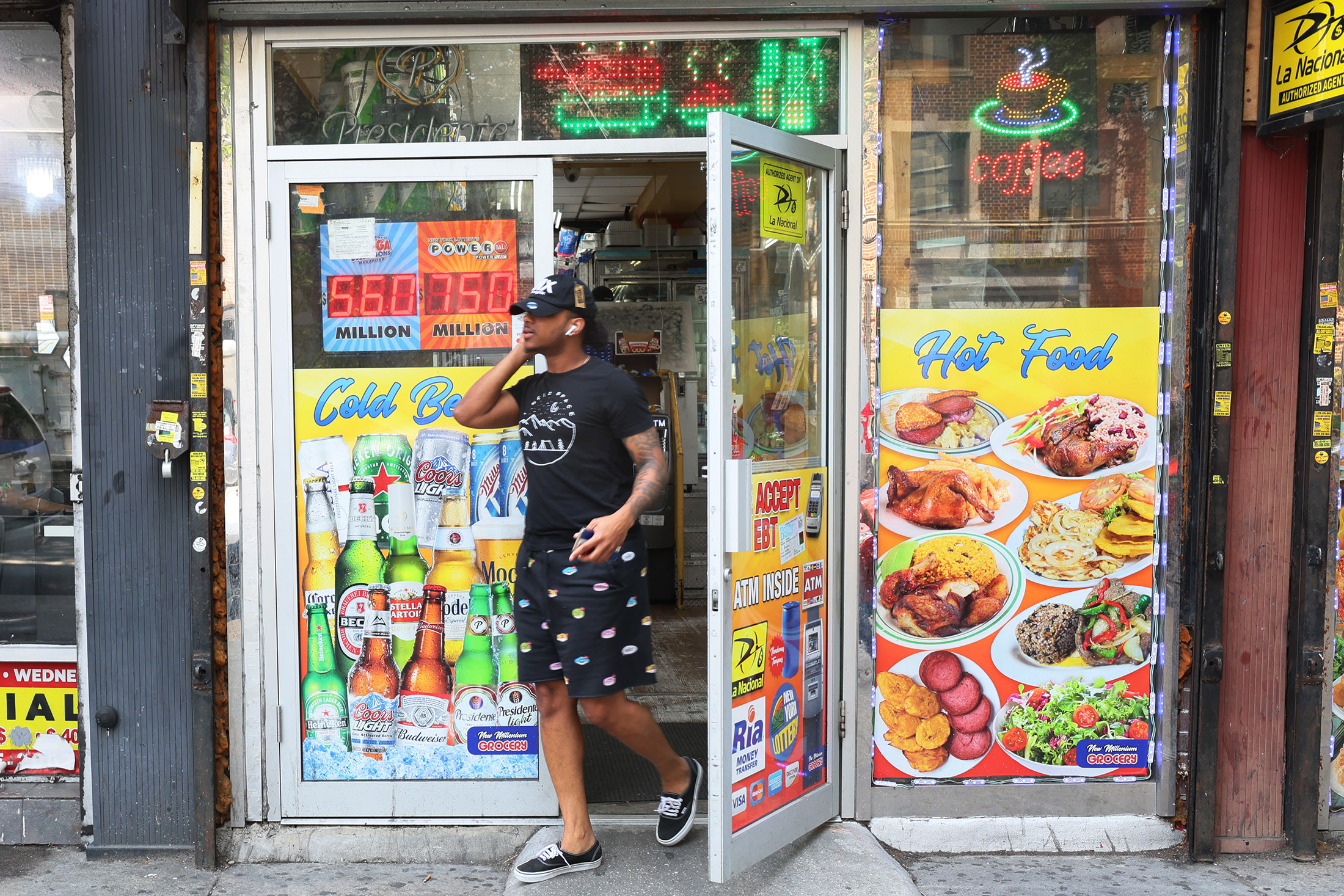 一位顾客离开了纽约布鲁克林区的一家小杂货店。