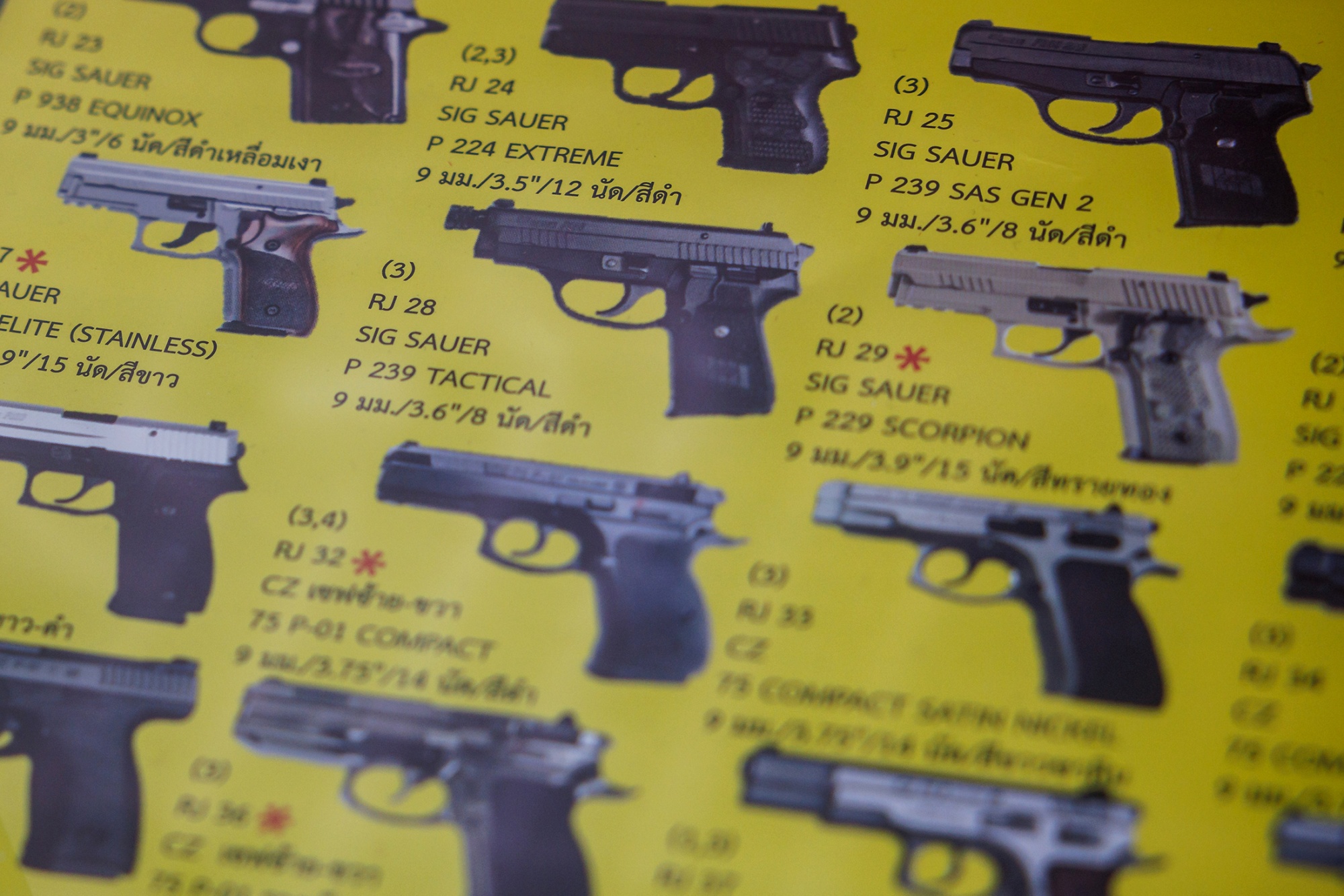 一家位于曼谷Burapha Road的枪店橱窗展示的包括Sig Sauer手枪在内的枪支清单。摄影师:Andre Malerba美国正在出口比以往任何时候都更多的枪支。美国商务部一直在为枪支行业充当助推器和门房服务员,即使美国的大规模枪击事件令全世界震惊,许多进口国的枪支犯罪率也在上升。没有任何公司比Sig Sauer更努力地为美国枪支出口的增长努力过,也没有任何公司从中受益更多。阅读调查。