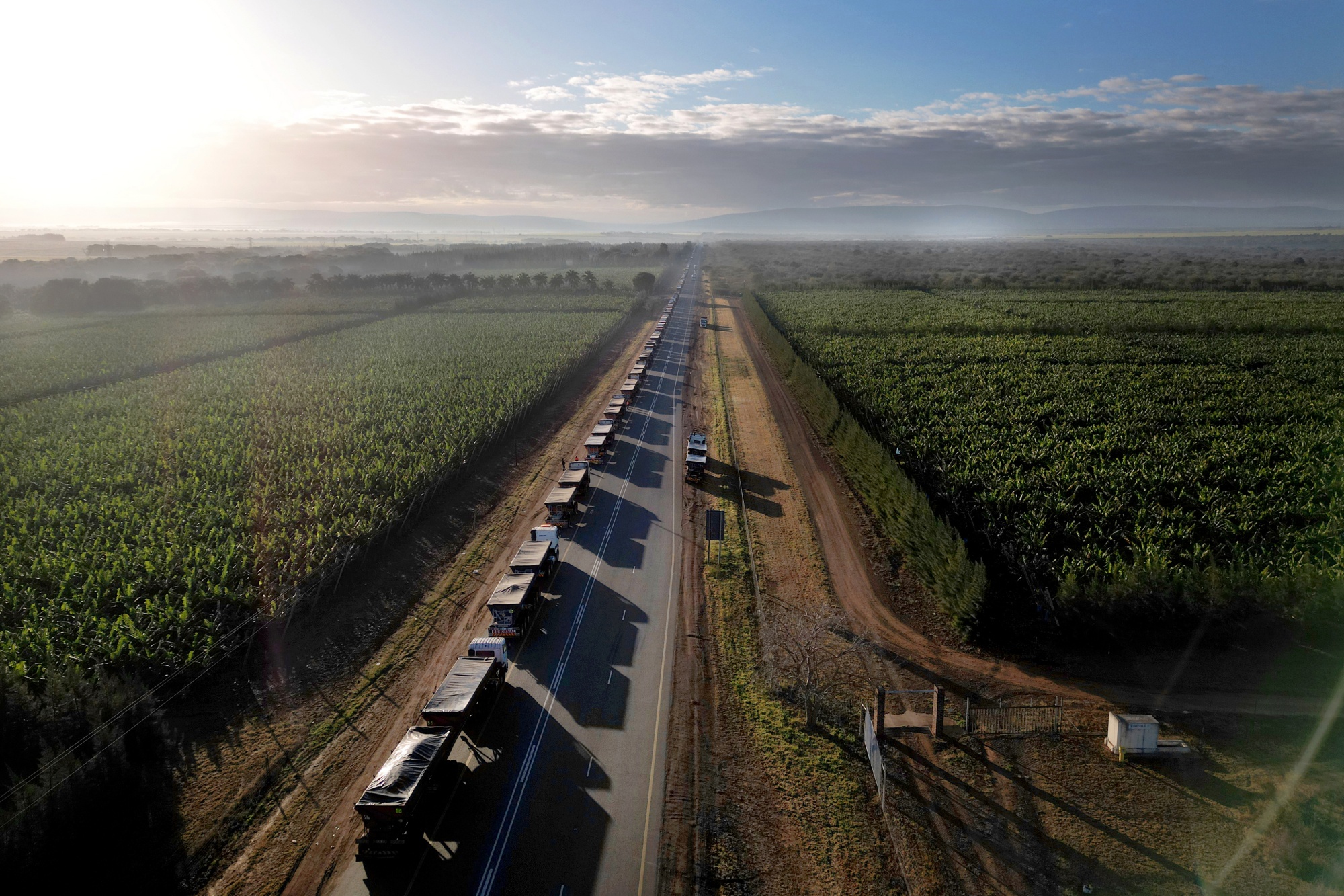 卡马蒂波特的莱邦博边境控制站,南非的卡车等待穿越到莫桑比克,日期为7月14日。