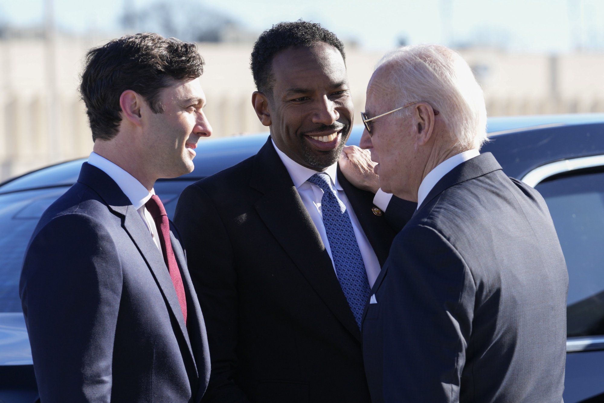 总统乔·拜登与亚特兰大市市长安德烈·狄更斯(中)和参议员乔恩·奥索夫交谈。摄影师:卡罗琳·卡斯特/美联社照片沃诺克和亚特兰大市长安德烈·狄更斯在拜登的全国顾问委员会任职。