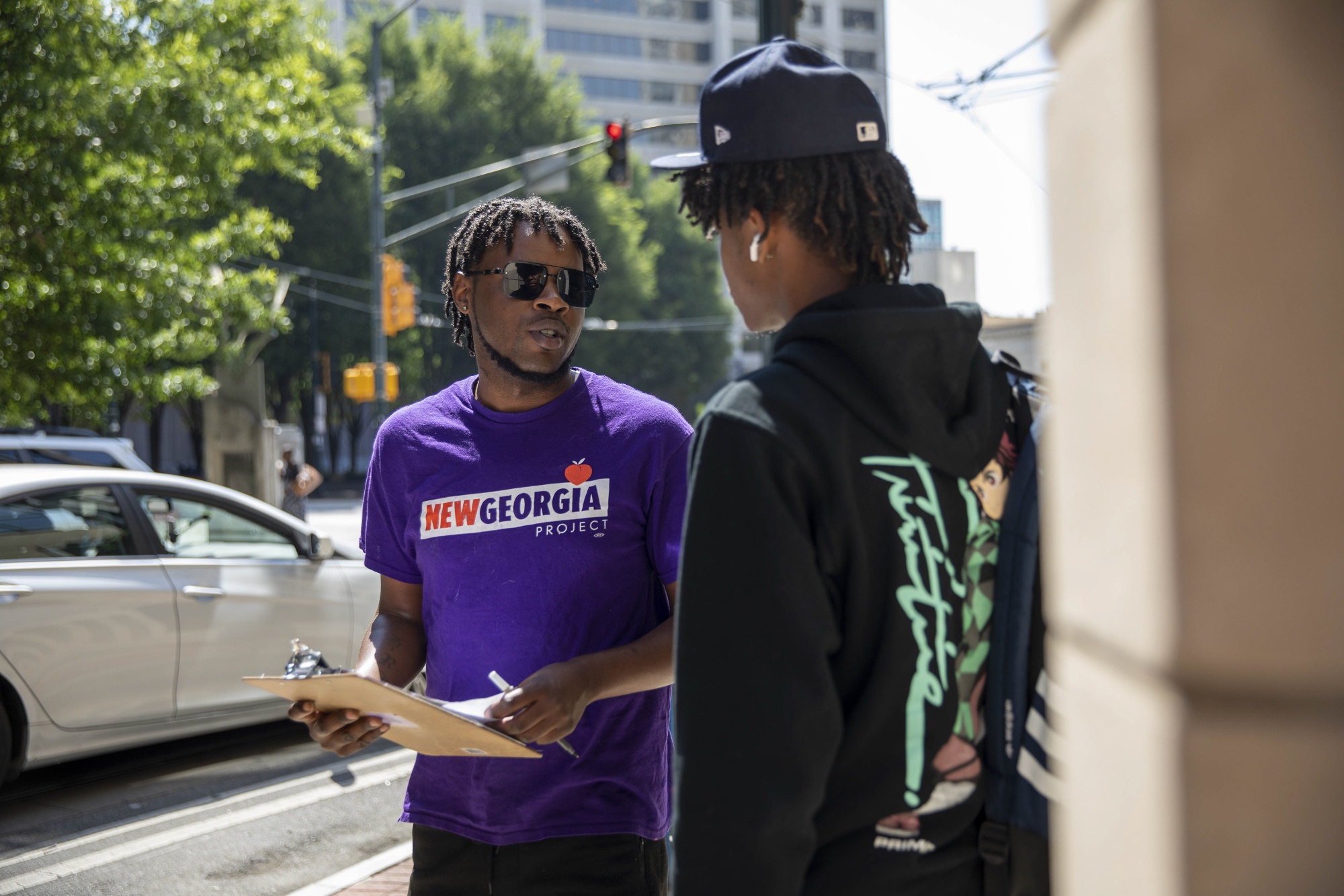 新乔治亚项目的一名宣传员在亚特兰大市中心为人们登记选民资格。摄影师:Alyssa Pointer/Bloomberg对民主党来说,这是一个令人担忧的信号,几十年来,该党一直将黑人选民视为其联盟中可靠的一部分,但最近在这一群体中看到了支持的小幅减少,包括在2022年中期选举中。