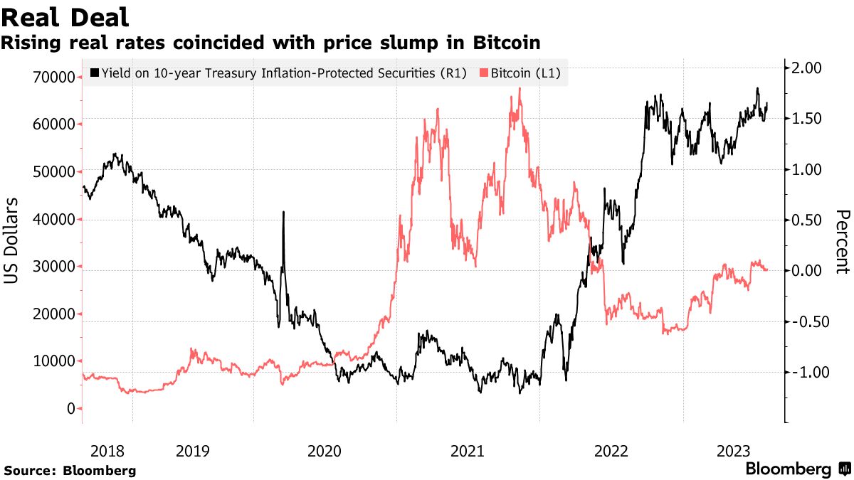 比特币上涨了超过1%,达到29,600美元,截至周三上午8:33,在伦敦,使其从去年暴跌以来的2023年反弹率达到了79%。这种最大的数字资产仍然比其2021年的峰值近69,000美元低约39,000美元。