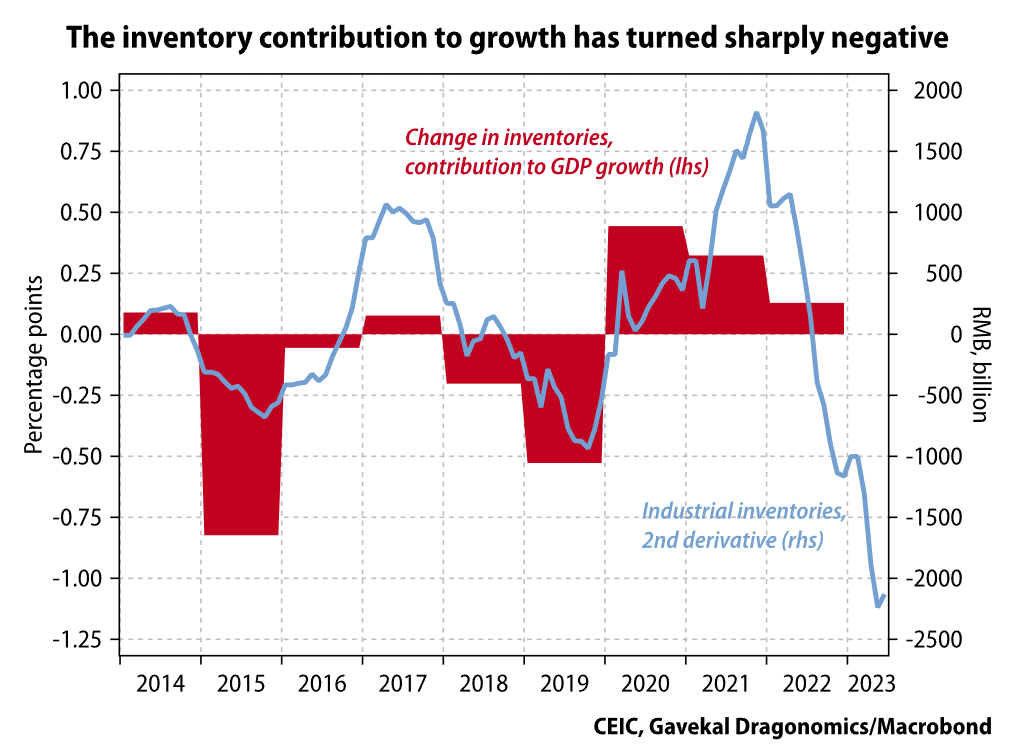库存解释 | 如果你不是会计师、经济学家或物流经理,很难对库存感到兴奋。但事实证明,它们可能解释了中国出乎意料的疲软反弹的相当部分。Gavekal Dragonomics的托马斯·加特利指出,过去几年中国的库存波动很大。公司在2021年和2022年积累了大量商品,部分原因是为了防范供应链中断,部分原因是由于疫情封锁导致消费支出受到严重限制。去年11月,企业平均手头有1.44个月的销售量,这是一个创纪录的高点,排除了疫情初期销售大幅下降的情况,加特利在本周致客户的一份备忘录中强调。特别积累的领域包括机械和电子制造商持有的原材料以及为消费者准备的成品。现在,公司正在消耗这些库存,这种动态“在整个供应链上制造了负面连锁效应”,加特利写道,因为公司在库存达到期望水平之前会减少生产和订购原材料。坏消息是:除非销售额显著超过GDP增长,“库存水平恢复到疫情前水平可能需要18个月。”