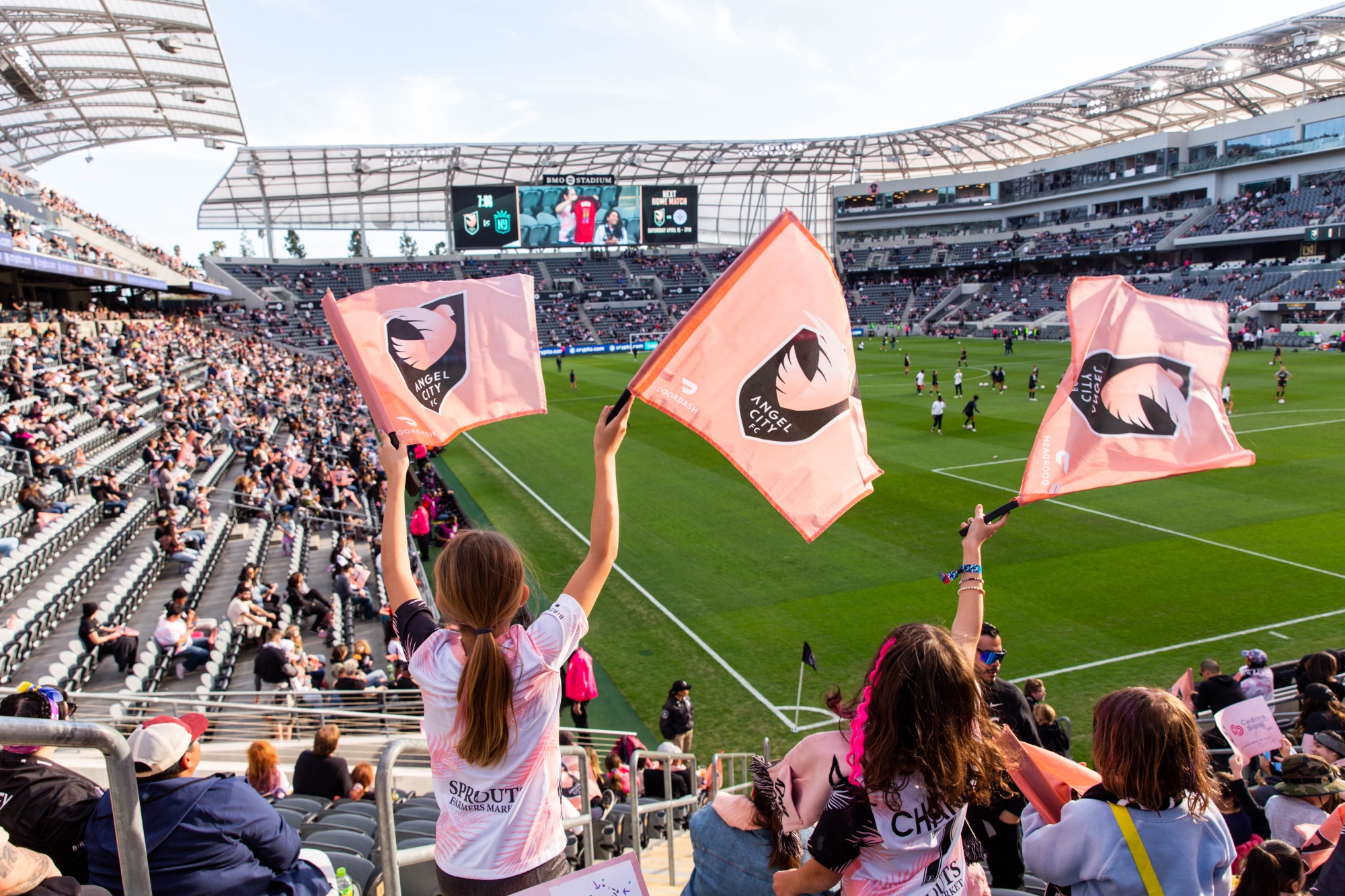 三月份在洛杉矶举行的天使城足球俱乐部开幕比赛中的球迷。