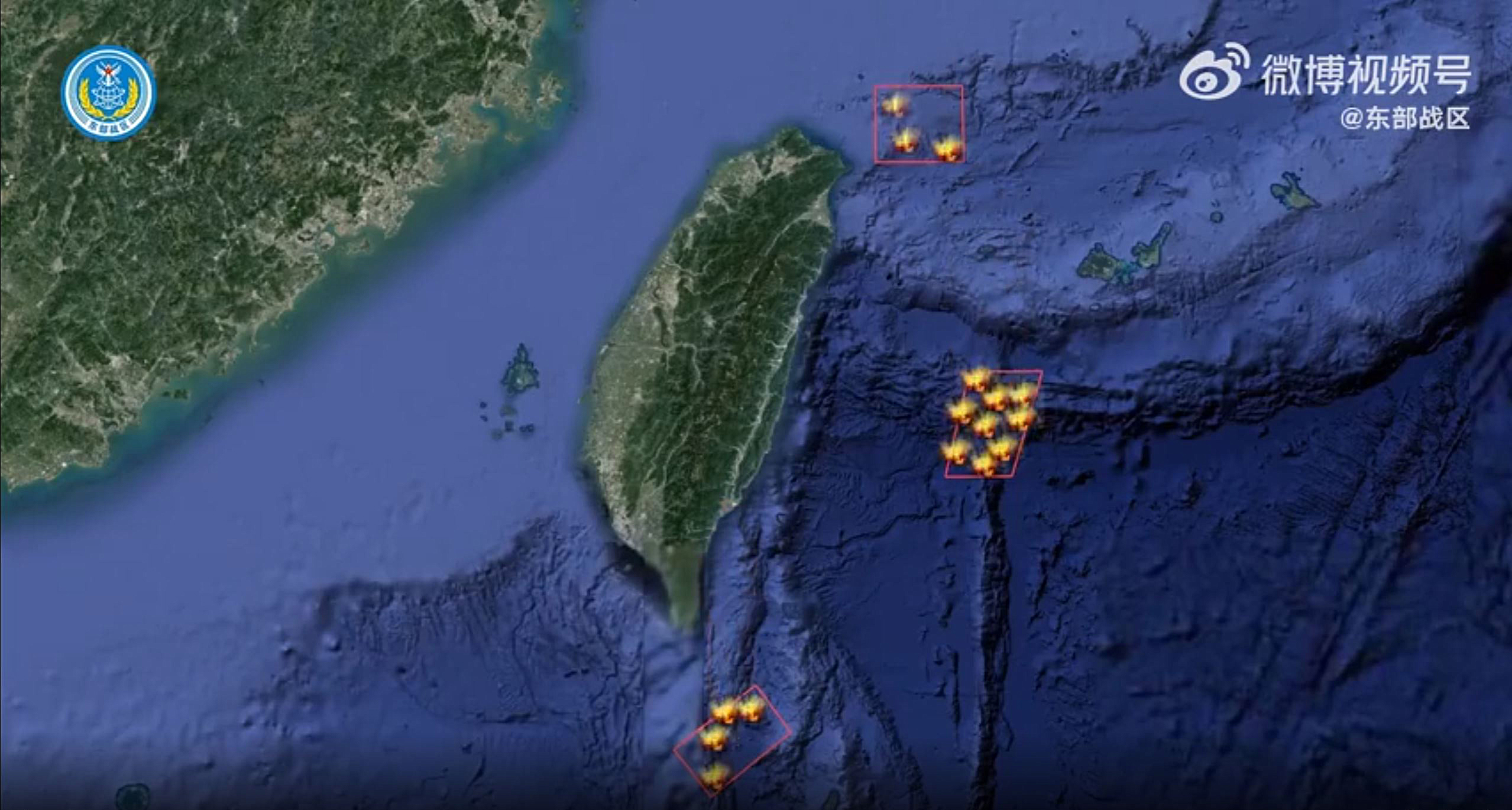 从中国人民解放军东部军区微博账号发布的视频截图,展示了中国导弹落在台湾周围。来源:微博关于习近平的火箭部队及其领导人,我们知道:
