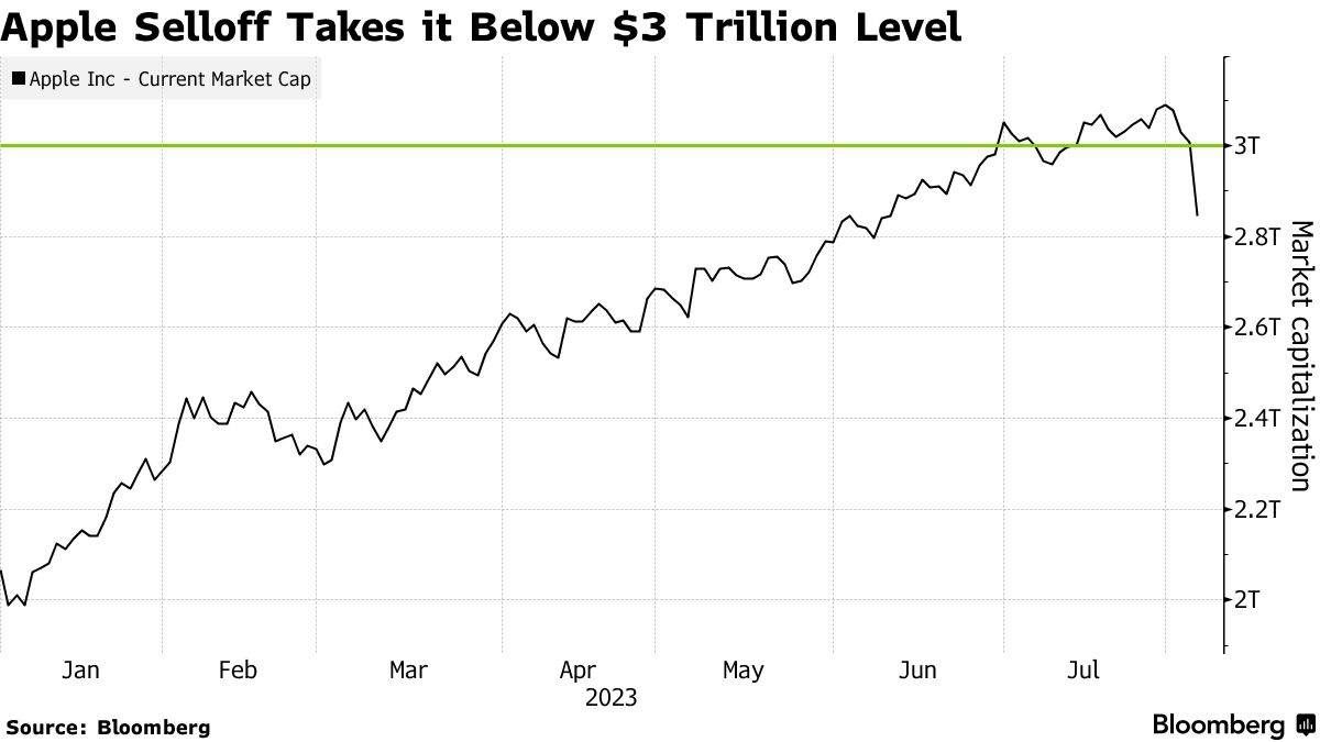 苹果(AAPL)市值蒸发3万亿美元,销售额下降 - 彭博报道