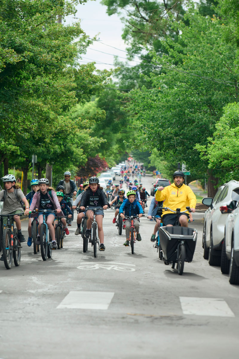 37岁的波特兰俄勒冈州体育教师萨姆·巴尔托开始了他成为气候爸爸的旅程,寻找一种让孩子们锻炼的方法。去年四月,巴尔托开始了每周一次的“自行车巴士”活动——一群学生骑自行车与成年志愿者一起前往附近的小学。他估计有30%的参与家庭原本会开车送孩子上学。