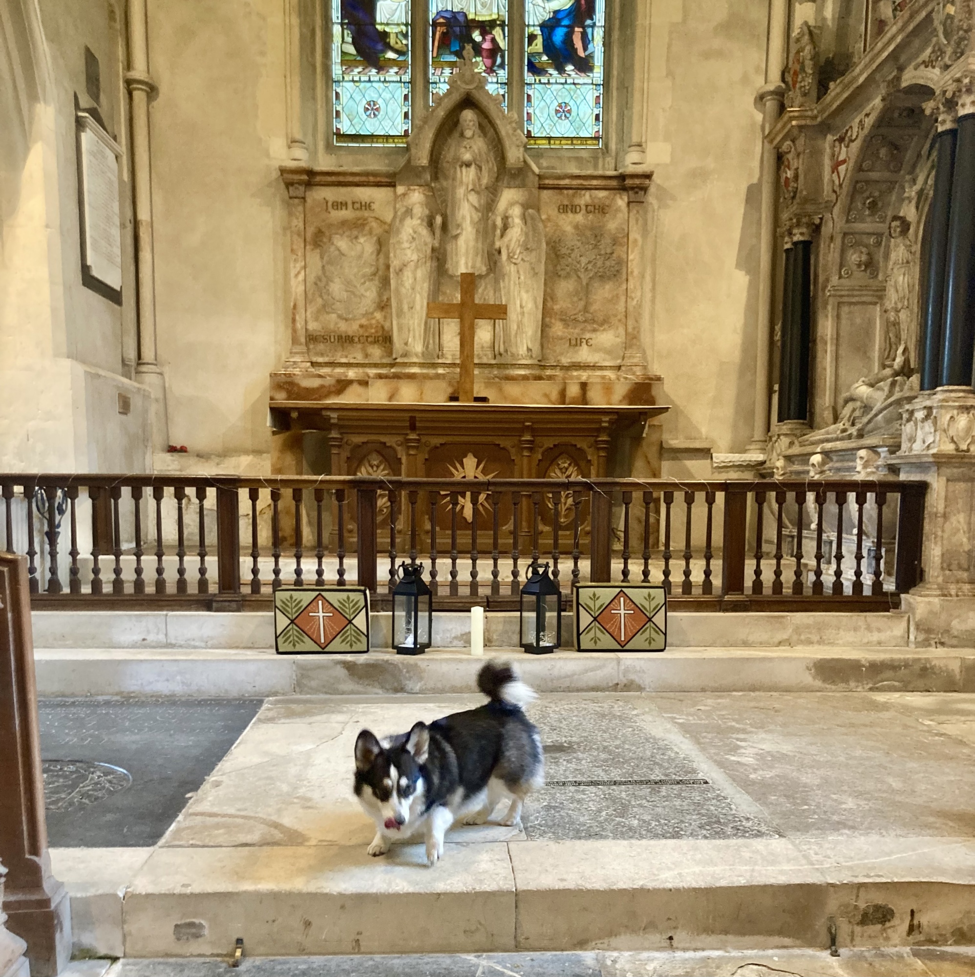 柯基犬布(Boo the Corgi)在教堂里进行调查。照片:Feargus O’Sullivan/Bloomberg CityLab我们选择住在圣玛丽圣母教堂,这是位于伦敦北部斯坦斯特德蒙菲切特边缘的一座英国圣公会教堂,毗邻(但令人惊讶地没有受到干扰)伦敦第三大航空站斯坦斯特德机场。 这座教堂原来比普通的英国村庄教堂更大、更宏伟、更古老。 它在500多年的时间里分期建造,有一些早在1100年代初期就建造的圆形前哥特式拱门,周围镶嵌着美丽的雕刻山形花纹。