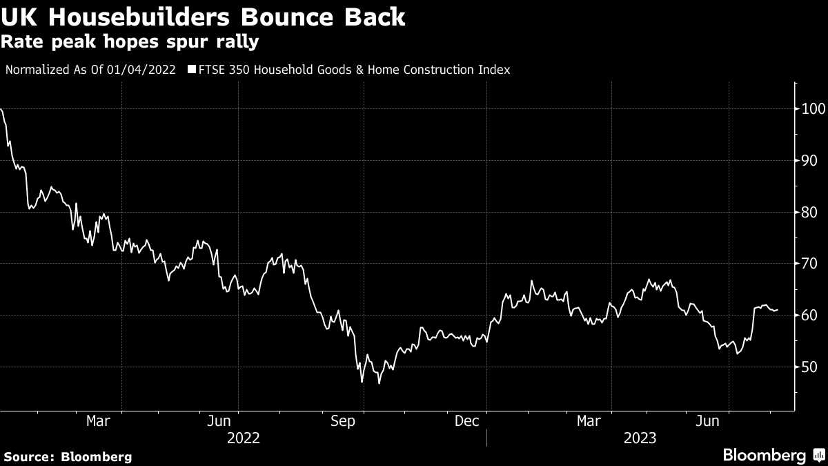 上次我们看到,房地产开发商股票(如下图所示的相关FTSE 350部门)正在下跌,因为市场对英国利率的预期稳步上升。