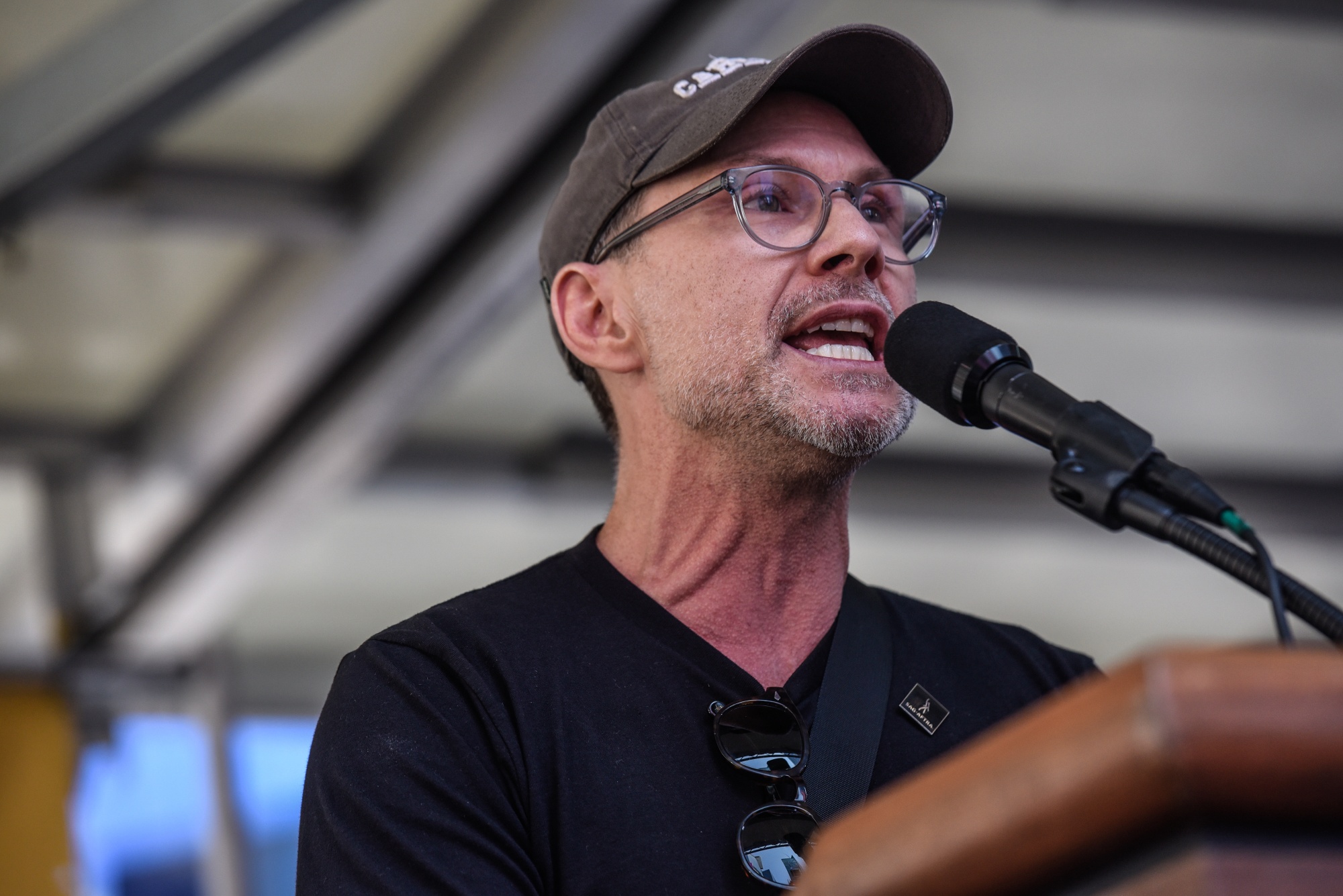 演员克里斯蒂安·斯莱特(Christian Slater)在美国纽约时代广场举行的美国演员工会集会上。2023年7月25日星期二,好莱坞两大劳工工会现在正在罢工,这是一场一代人难得一见的灾难,已经让娱乐业陷入停滞。摄影师:斯蒂芬妮·基思/彭博社下午好,我来自洛杉矶,我仍在从10万名尖叫的泰勒·斯威夫特(Taylor Swift)粉丝的声波攻击中恢复过来。很少能见到一个完全掌握自己工艺的大师,但从斯威夫特走上SoFi体育场舞台的那一刻起,她就显然是地球上最伟大的现场表演者之一。