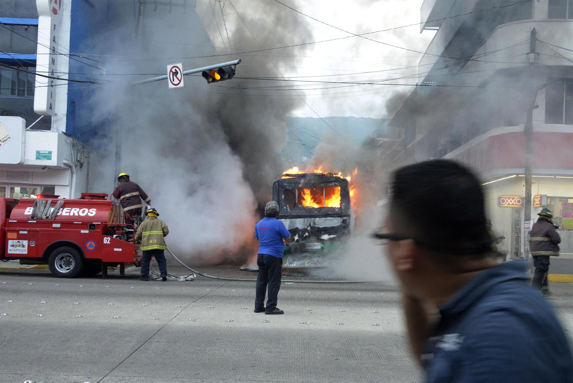 消防员正在努力扑灭墨西哥瓜雷罗州阿卡普尔科市一辆燃烧的车辆,时间是8月2日。摄影师:弗朗西斯科·罗布莱斯/法新社/盖蒂图片社墨西哥的瓜雷罗州,这里是旅游热点阿卡普尔科市所在地,正面临着越来越多的政治谋杀潮,犯罪团伙似乎在争夺控制权,这是拉丁美洲国家在明年大选之前遭受的最新暴力事件。