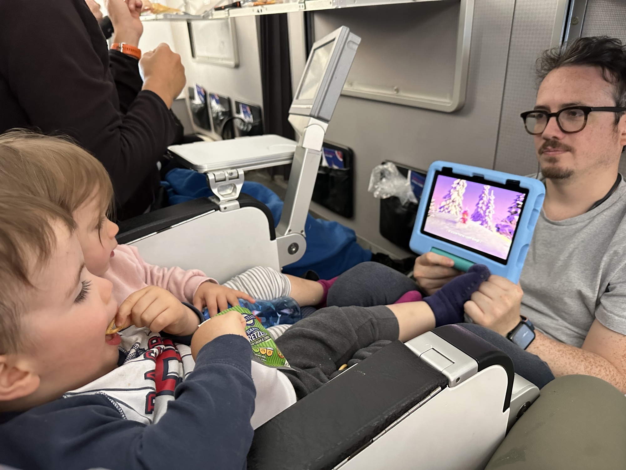“佩琪猪,”她毫不犹豫地回答。她和她的孪生兄弟在整个飞行中没有睡超过30分钟。
